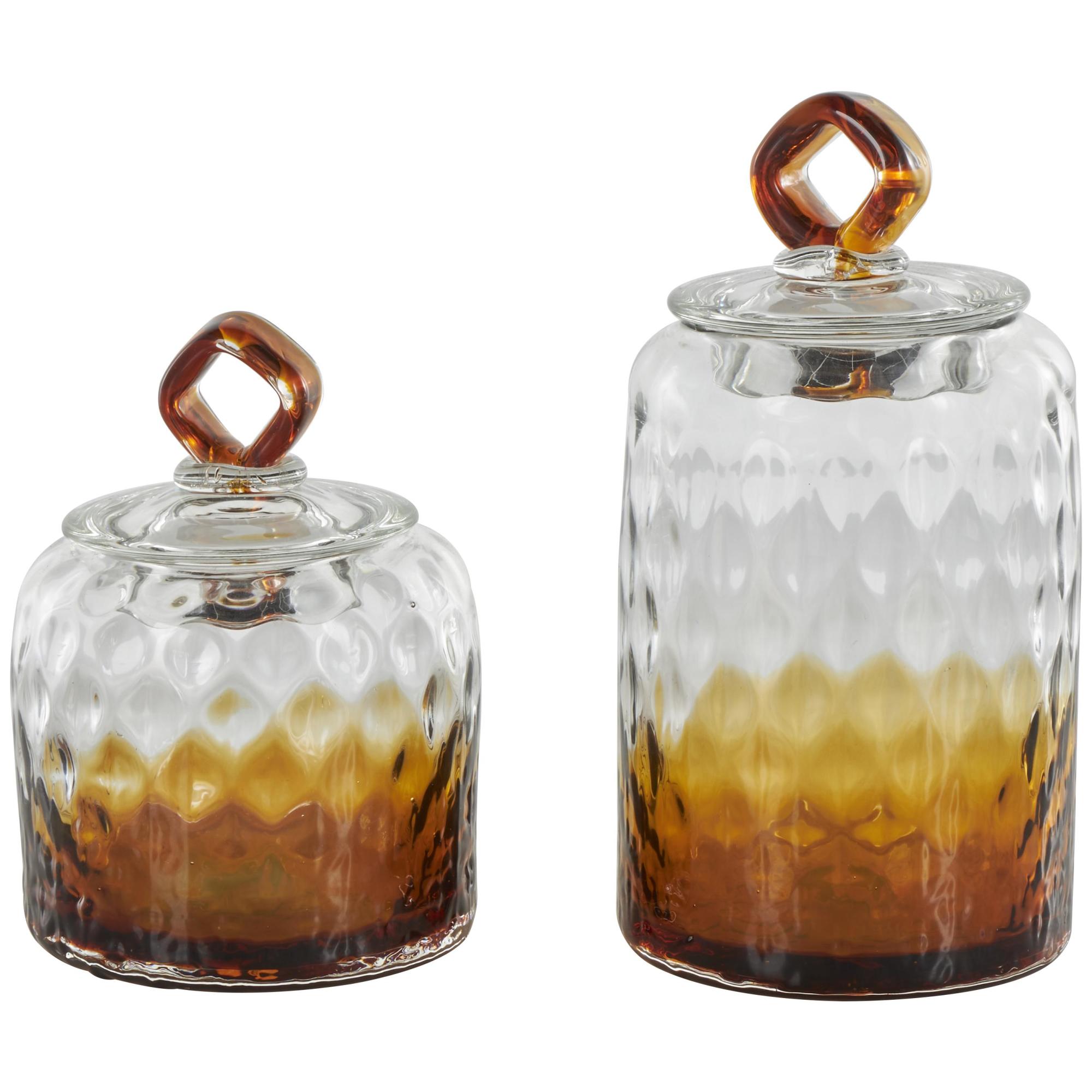 •With a faceted surface for added visual interest and luxurious diamond knobs atop, this glass set of 2 decorative jars embodies elegance and sophistication
