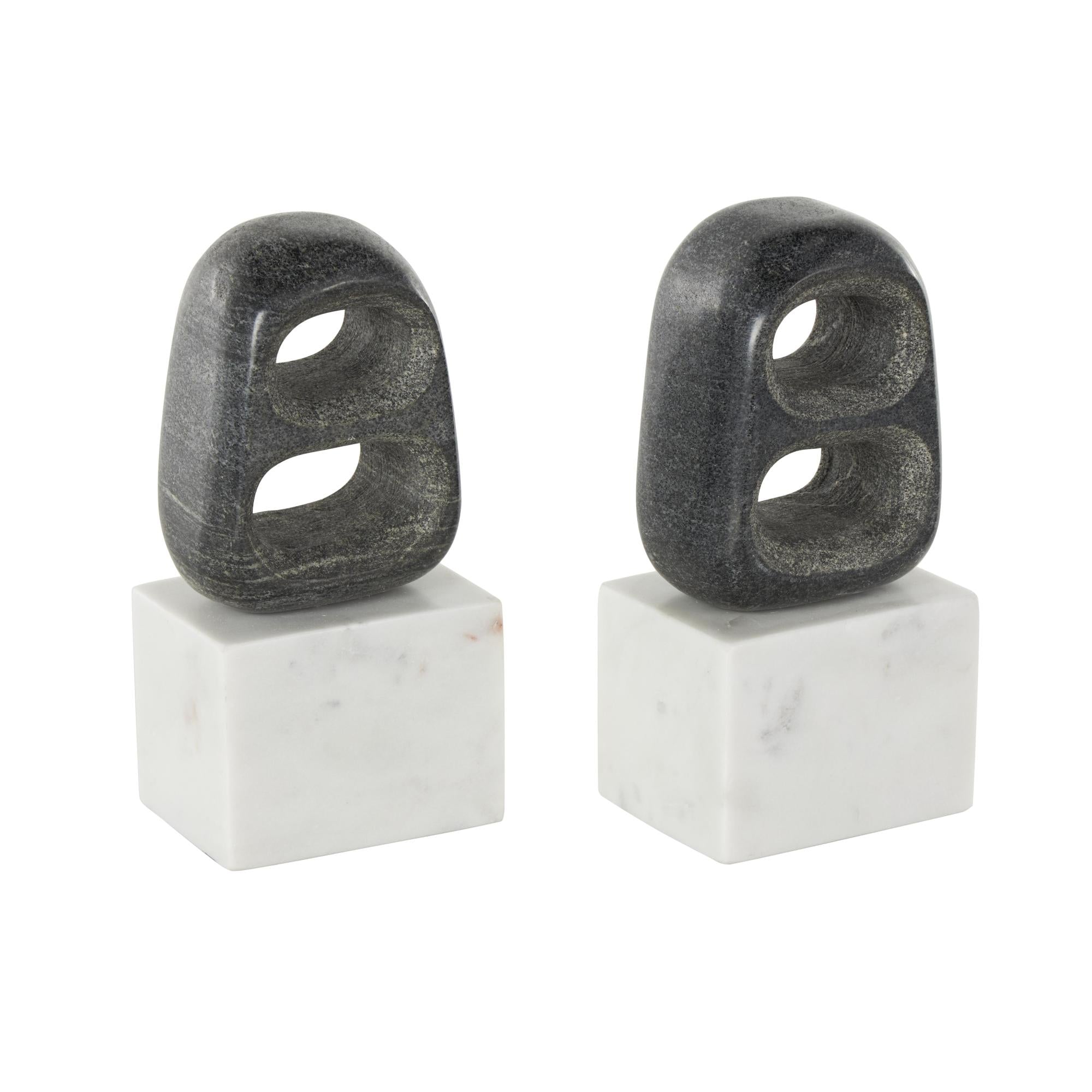 Set of 2 Geometric White Marble Cutout Oval Decorative Bookends with White Block Base