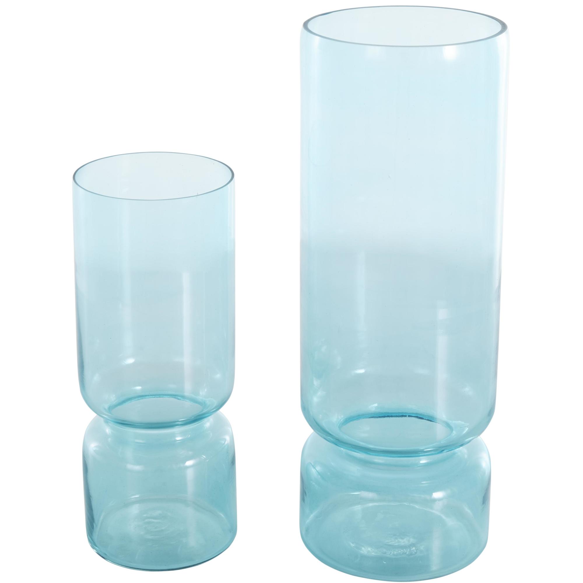 •This glass set of 2 vases features two different sizes, making them versatile for various decorative needs