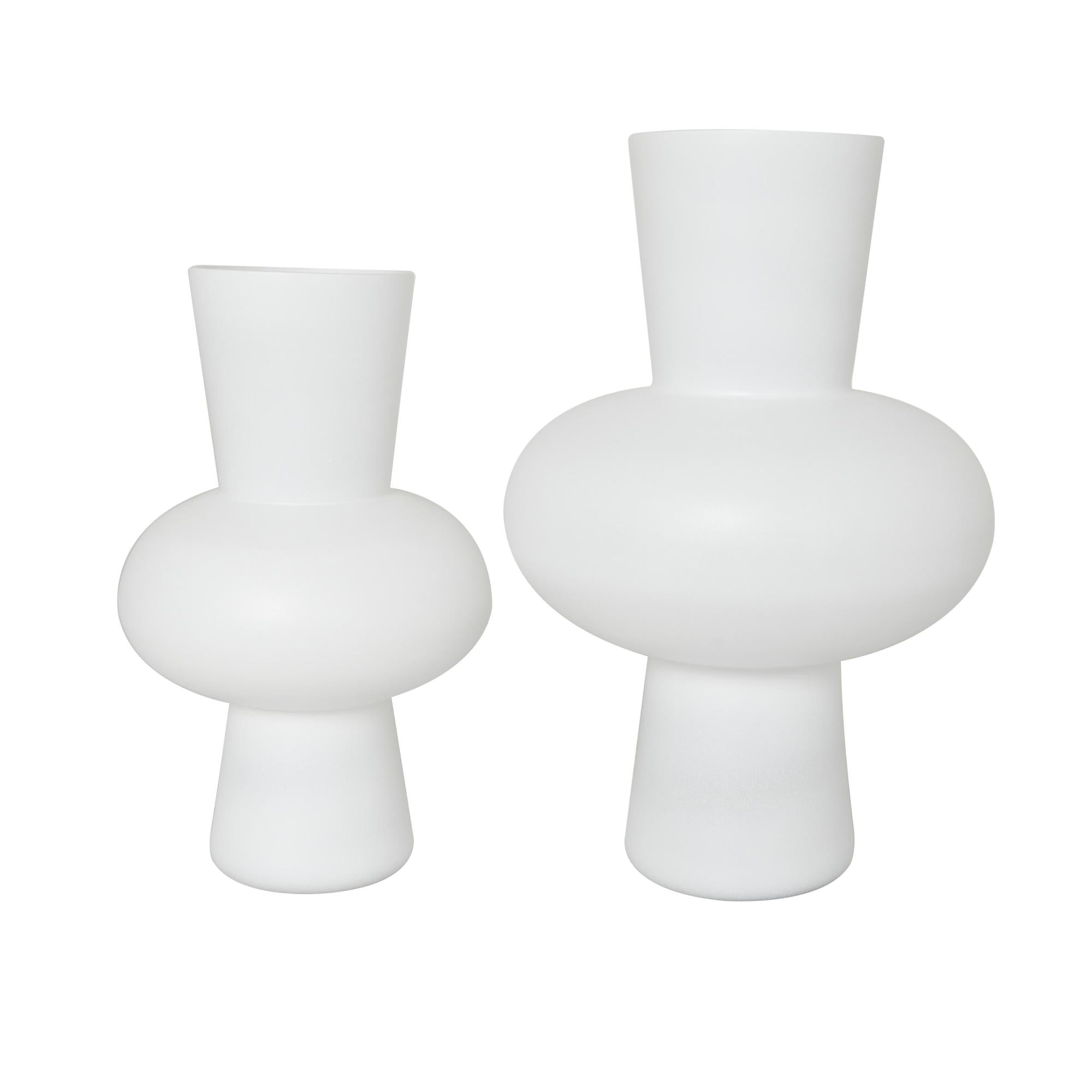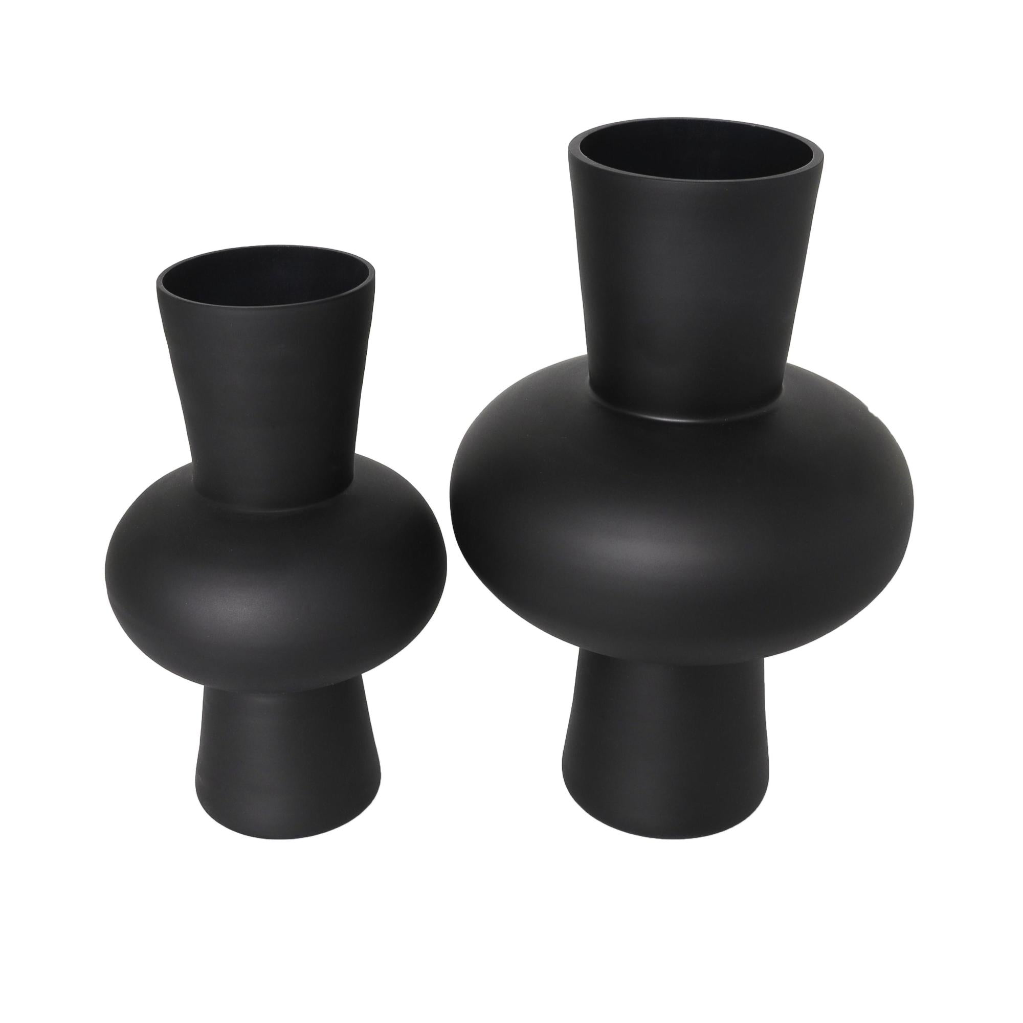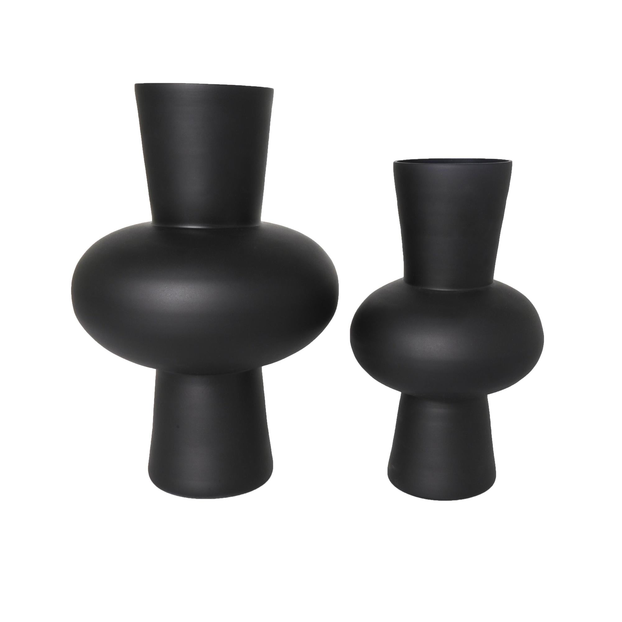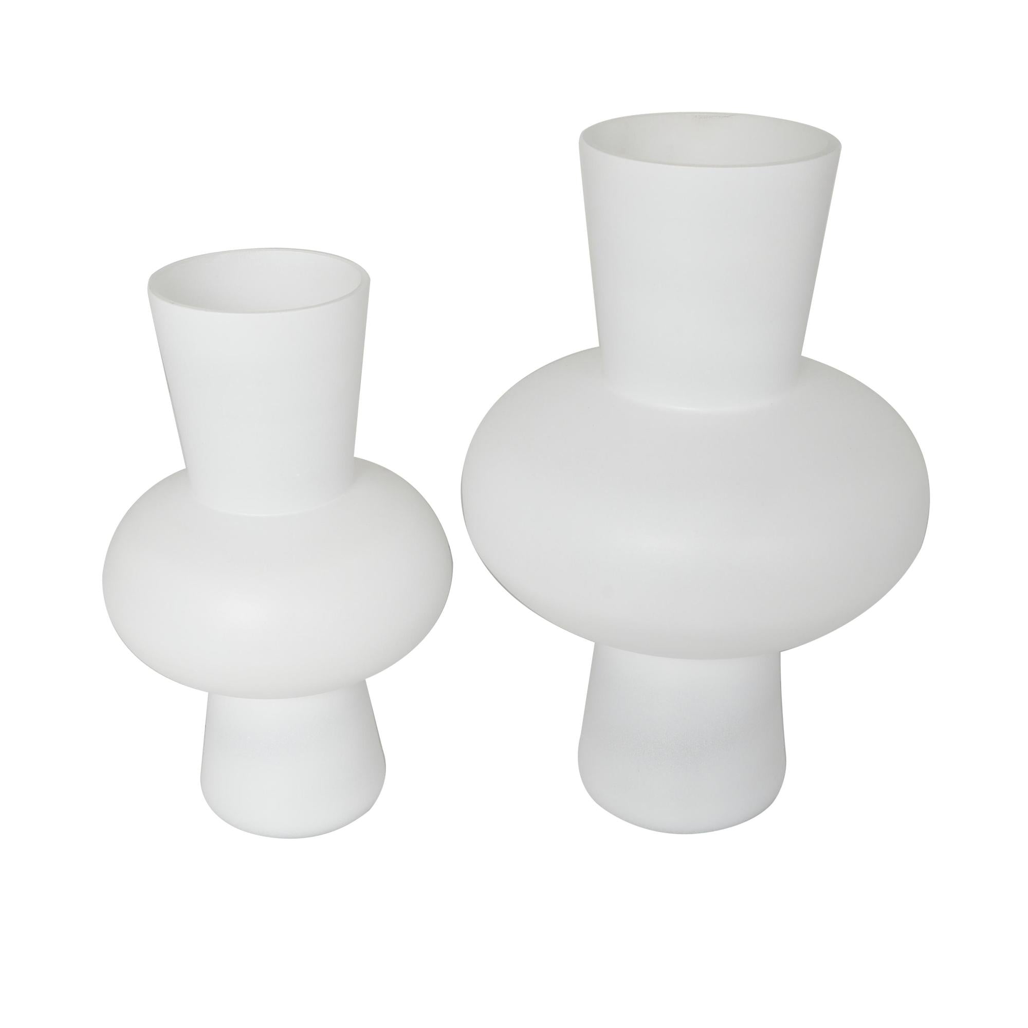 •The glass set of 2 vases features a wide rounded center and trumpet shape