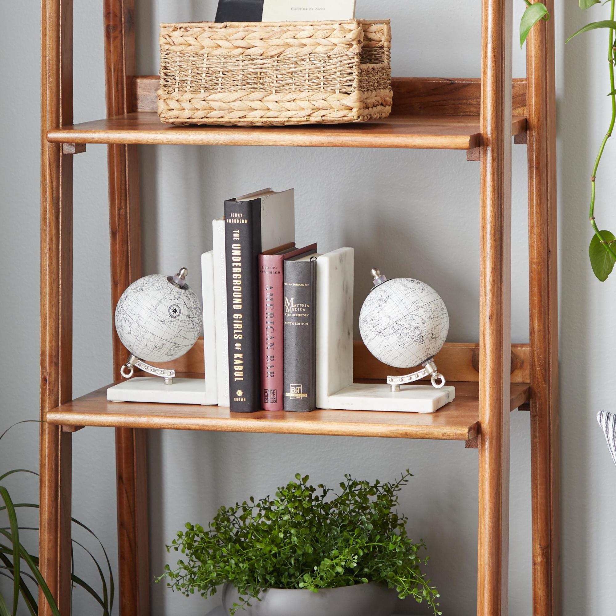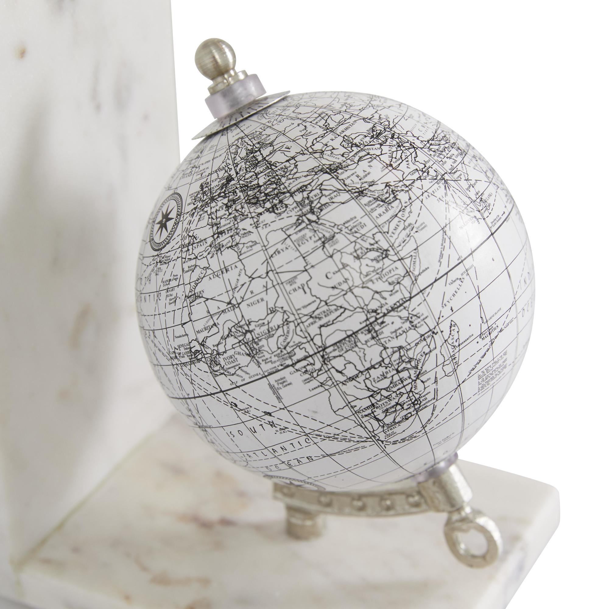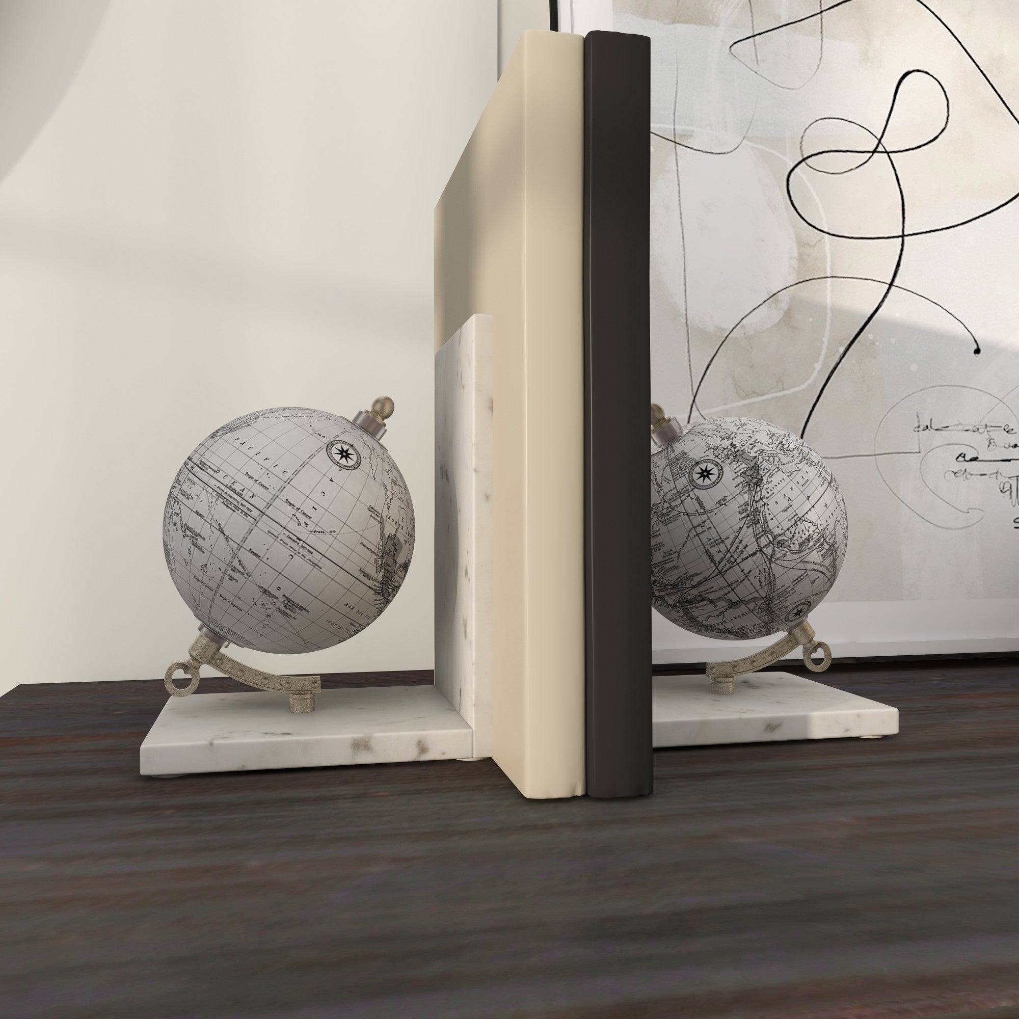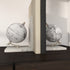 Set of 2 Globe White Marble Decorative Bookends with Silver Metal Accents
