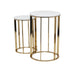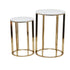 Set of 2 Gold Metal Side End Accent Table with Marble Top