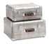 Perfect way to add depth and texture to your surface space with this compact and discreet box. A practical yet stylish upgrade that instantly elevate the look of your room. Ideal for enhancing living rooms and bedrooms, this set of 2 decorative keepsake boxes pairs beautifully with matching decor and color schemes. Designed with felt or rubber stoppers at the base that prevent scratching furniture and table tops, as well as sliding around. This item ships in 1 carton. Comes with faux leather handles and hinged latch locks.. Mdf box makes a great gift for any occasion. Suitable for indoor use only. This item ships fully assembled in one piece. This mdf decorative keepsake box comes as a set of 2. Farmhouse style.