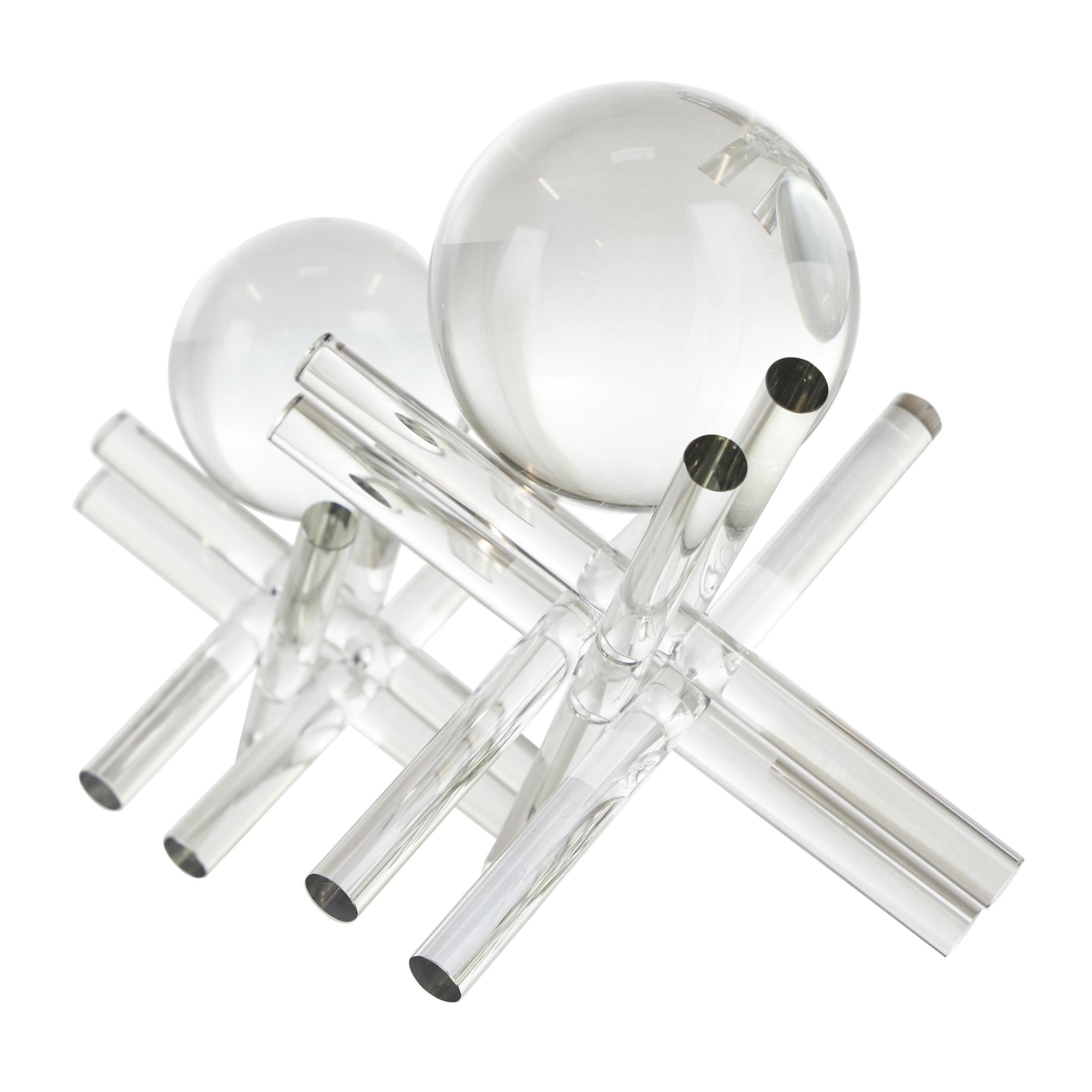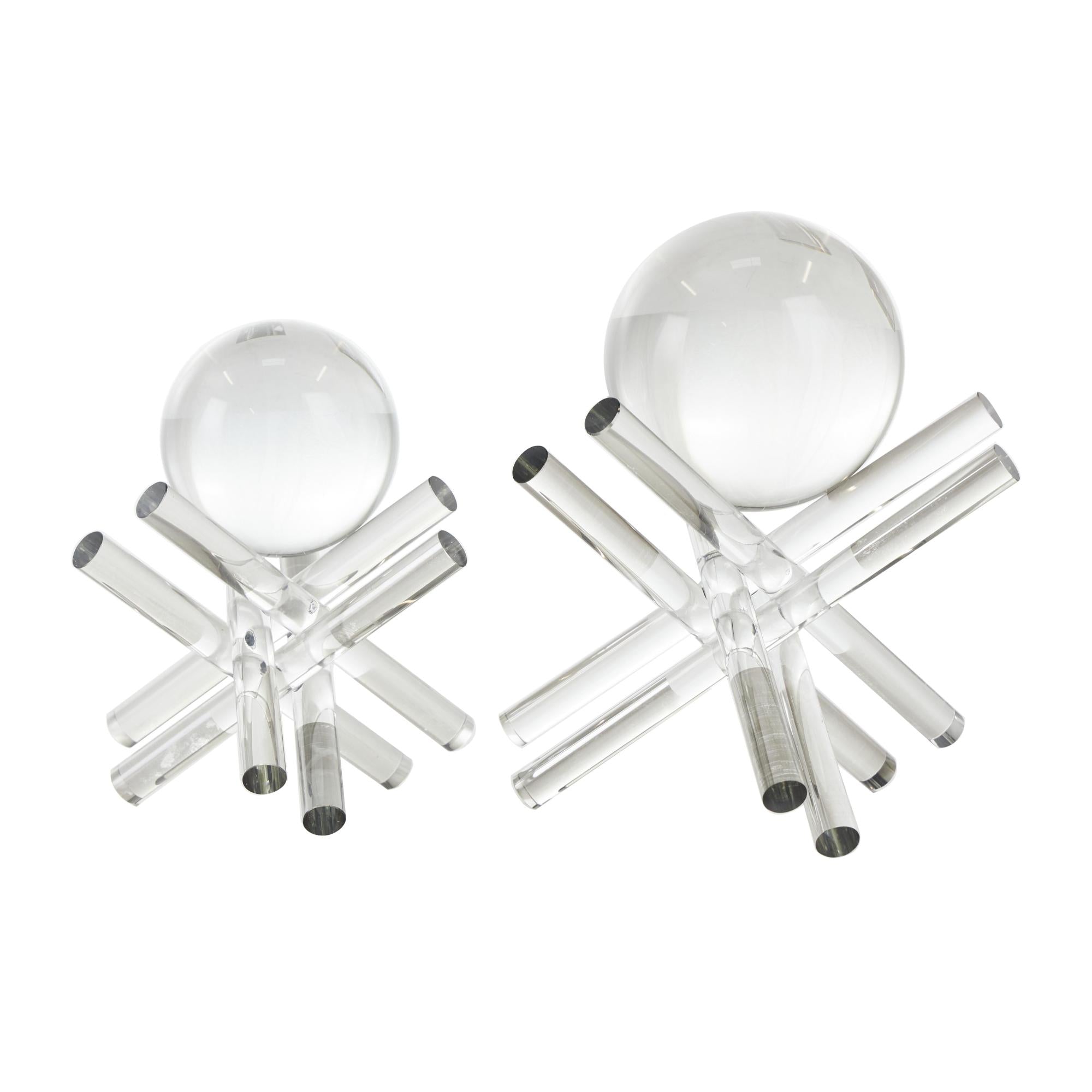 Set of 2 Jack Clear Crystal Inspired Decorative Sculpture with Clear Resting Orbs