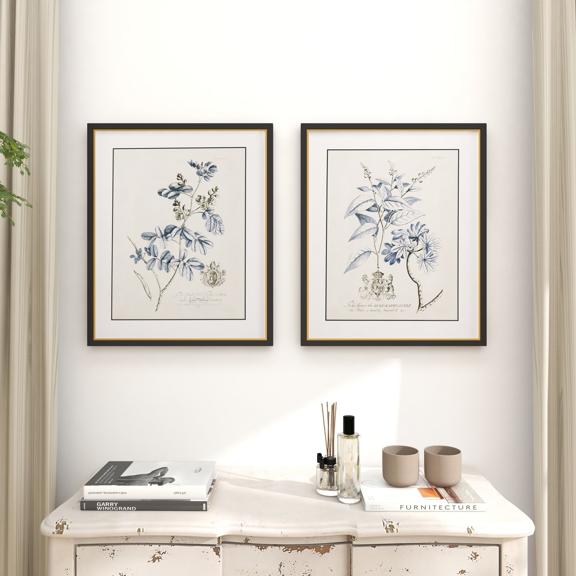 •This vintage set of 2 room wall decor is meticulously crafted with plant drawings encased in a fir frame and glass cover