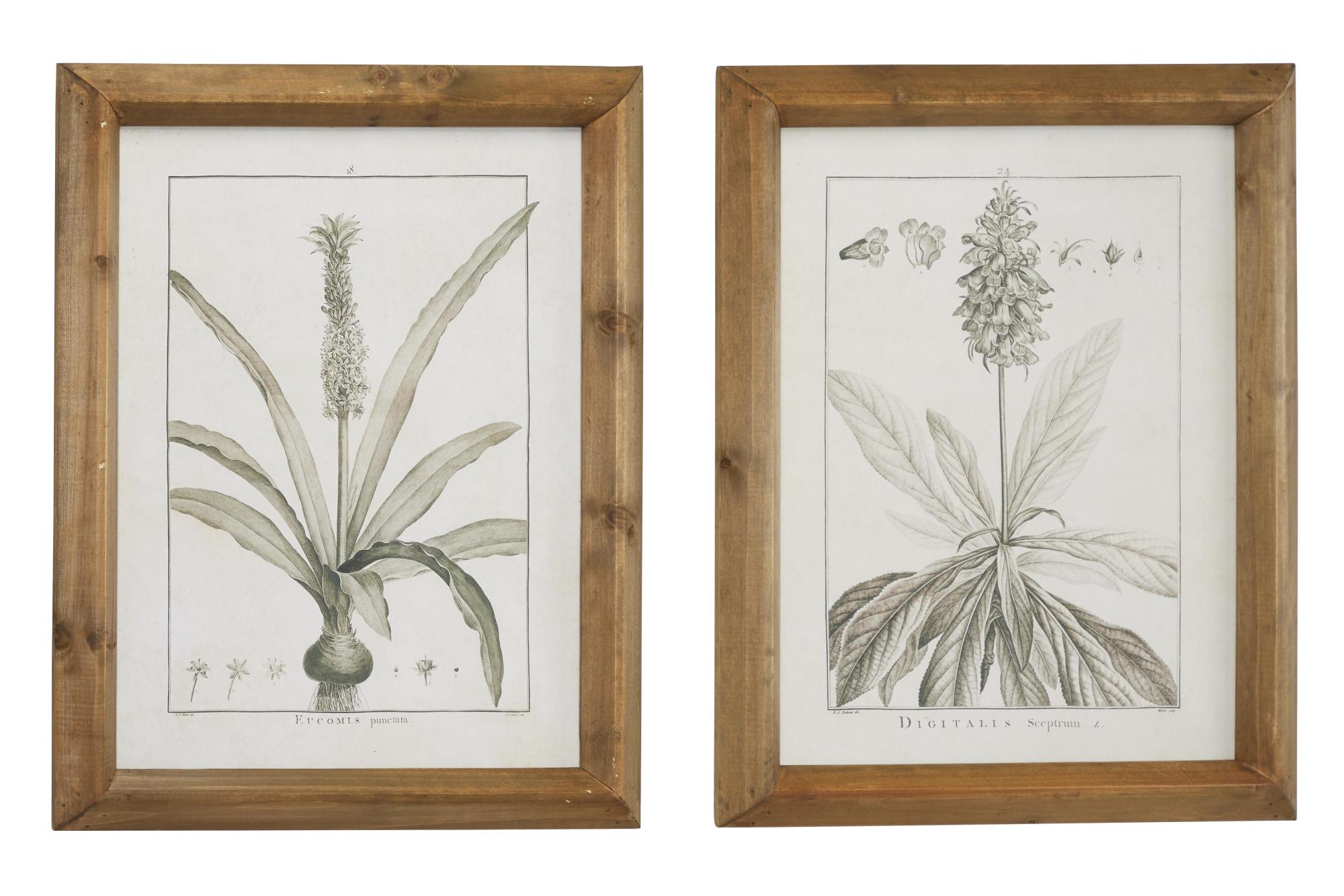 •The wood set of 2 framed wall arts showcases botanical sketches on wooden panels adorned with a charmingly worn finish, adding unique character to any space