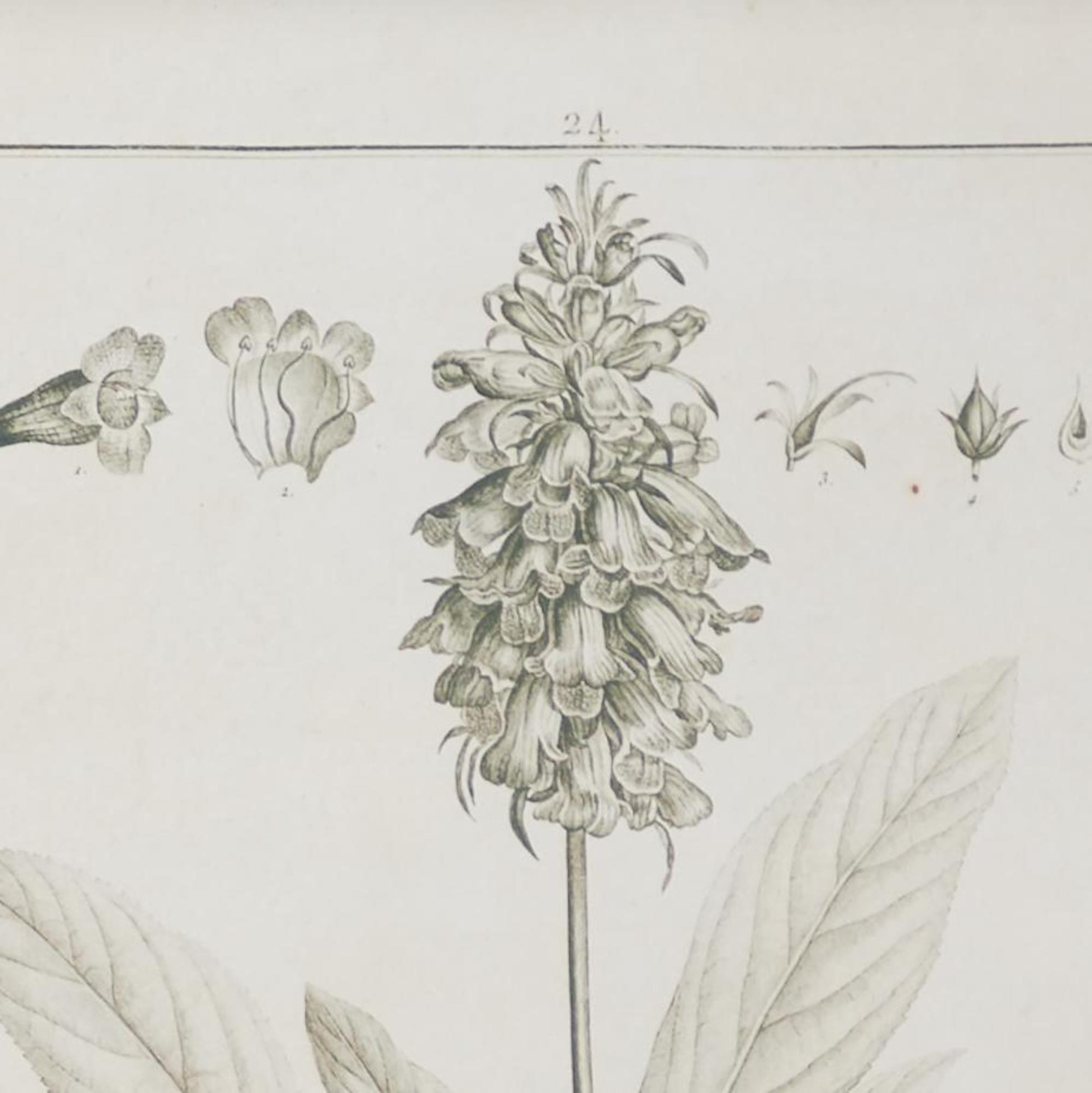 •This matte wall framed art features detailed pencil-like sketches of plants on a rectangular frame, enhancing its antique appeal