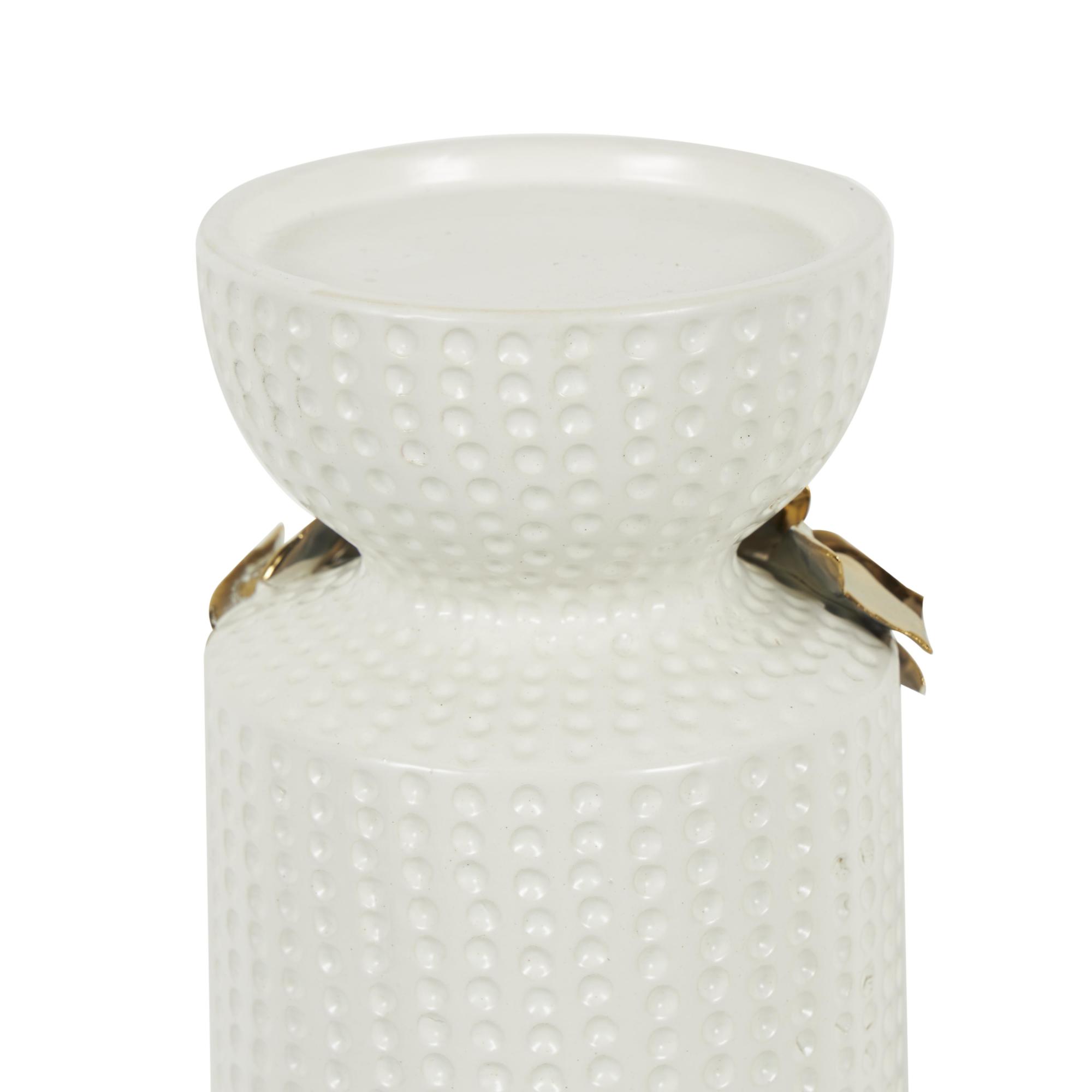 Set of 2 Leaf White Ceramic Decorative Candle Holder with Abstract Spotted Pattern and Gold Accents