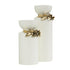 •Ceramic set of 2 candle holders features abstract spots along the body, and leaves at the top, adding a touch of artistic flair and visual intrigue to your decor