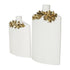 •Each piece in the glam set of 2 vases for home decor is meticulously crafted from molded ceramic and adorned with leaf accents