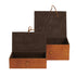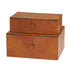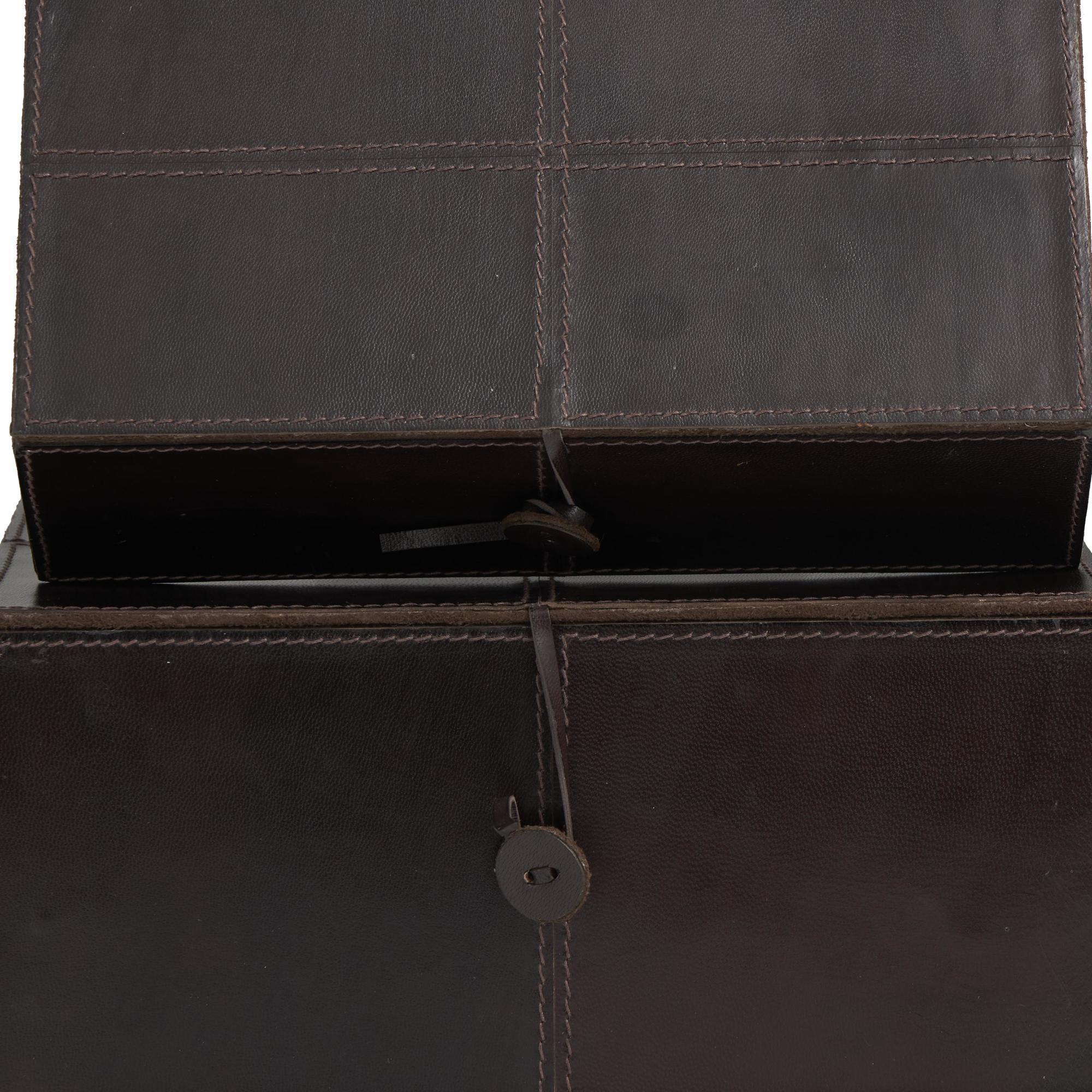 Set of 2 Leather Handmade Cowhide Storage Decorative Box with Leather Loop Closure and Stitching Detail