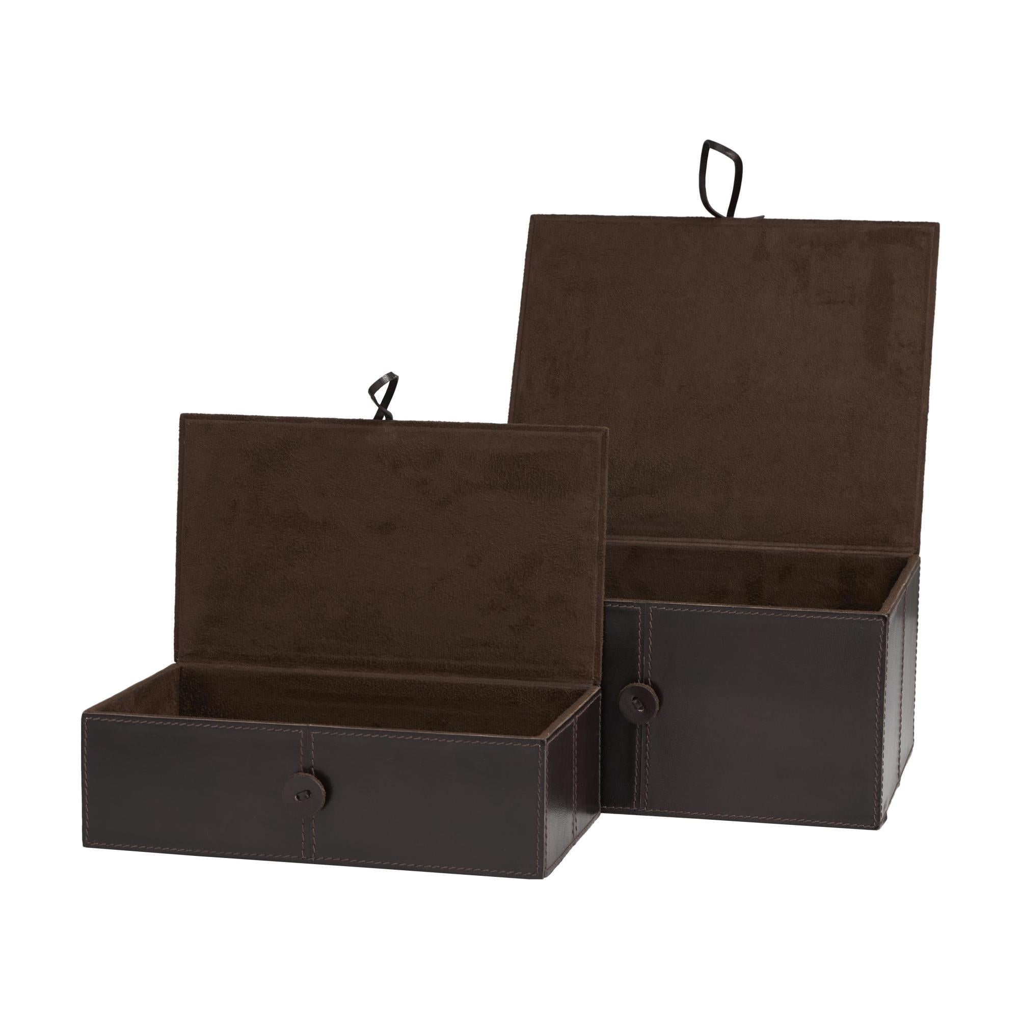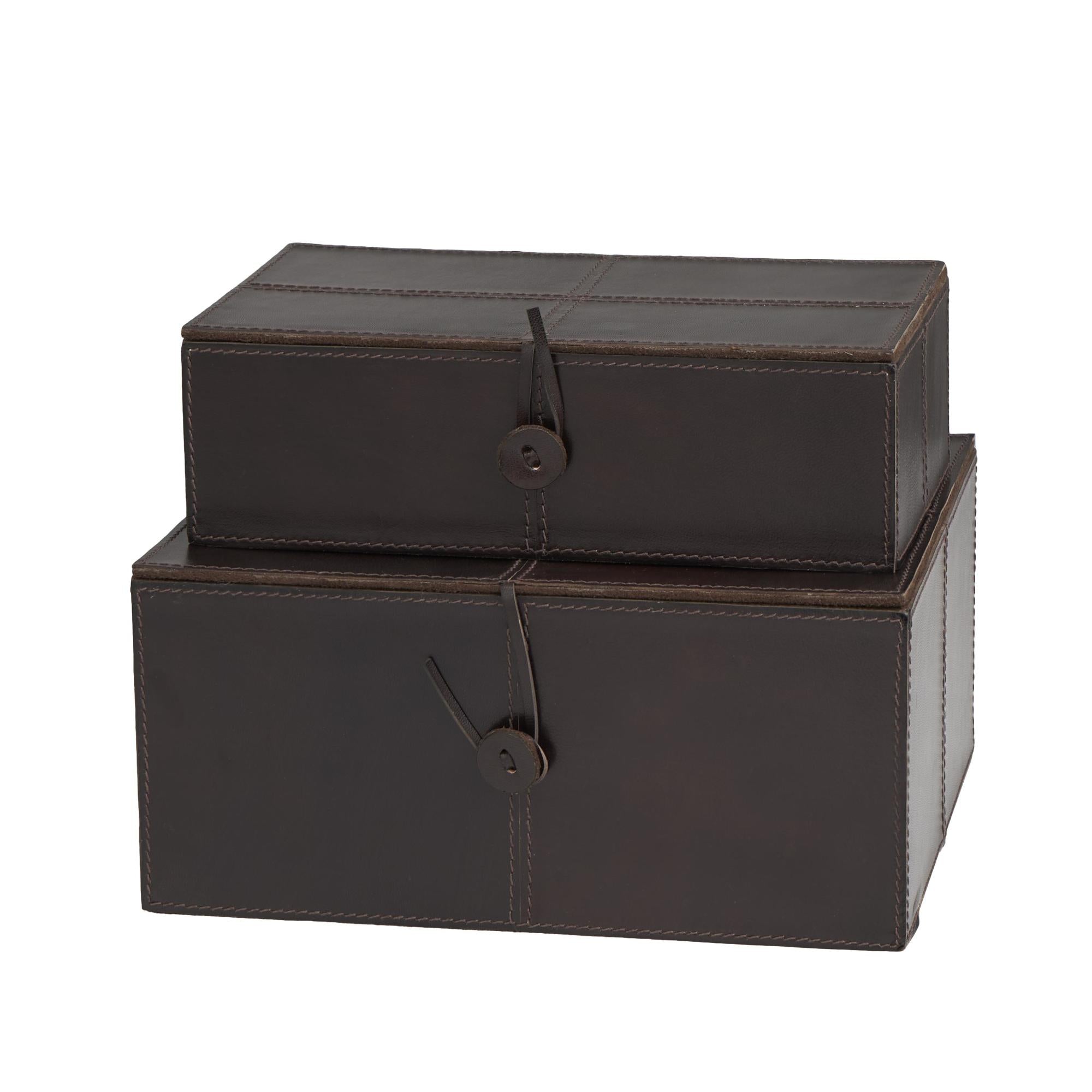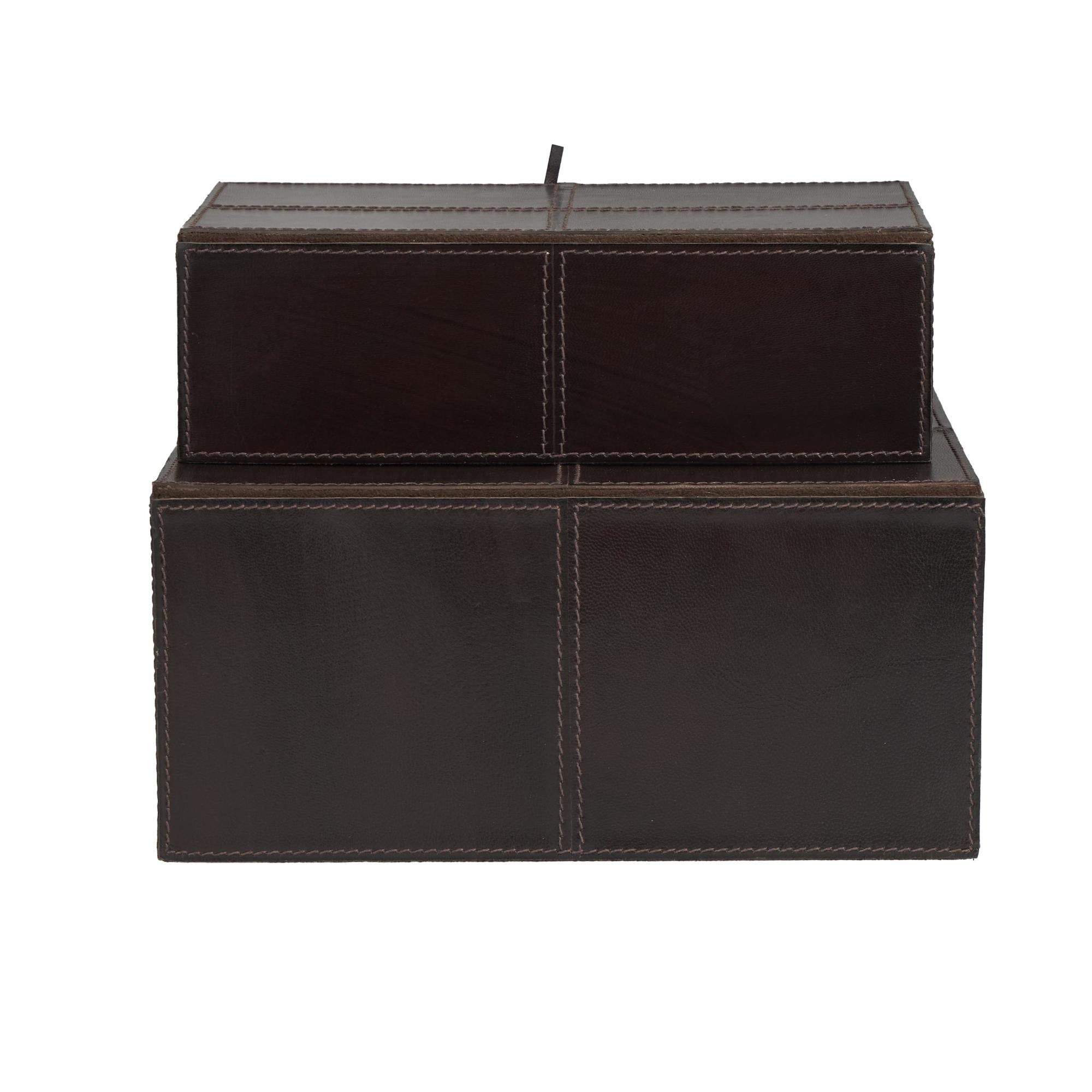 •Leather set of 2 boxes are unique with their lift-open feature on one lengthy side and locking mechanism via a wrap-around leather ribbon