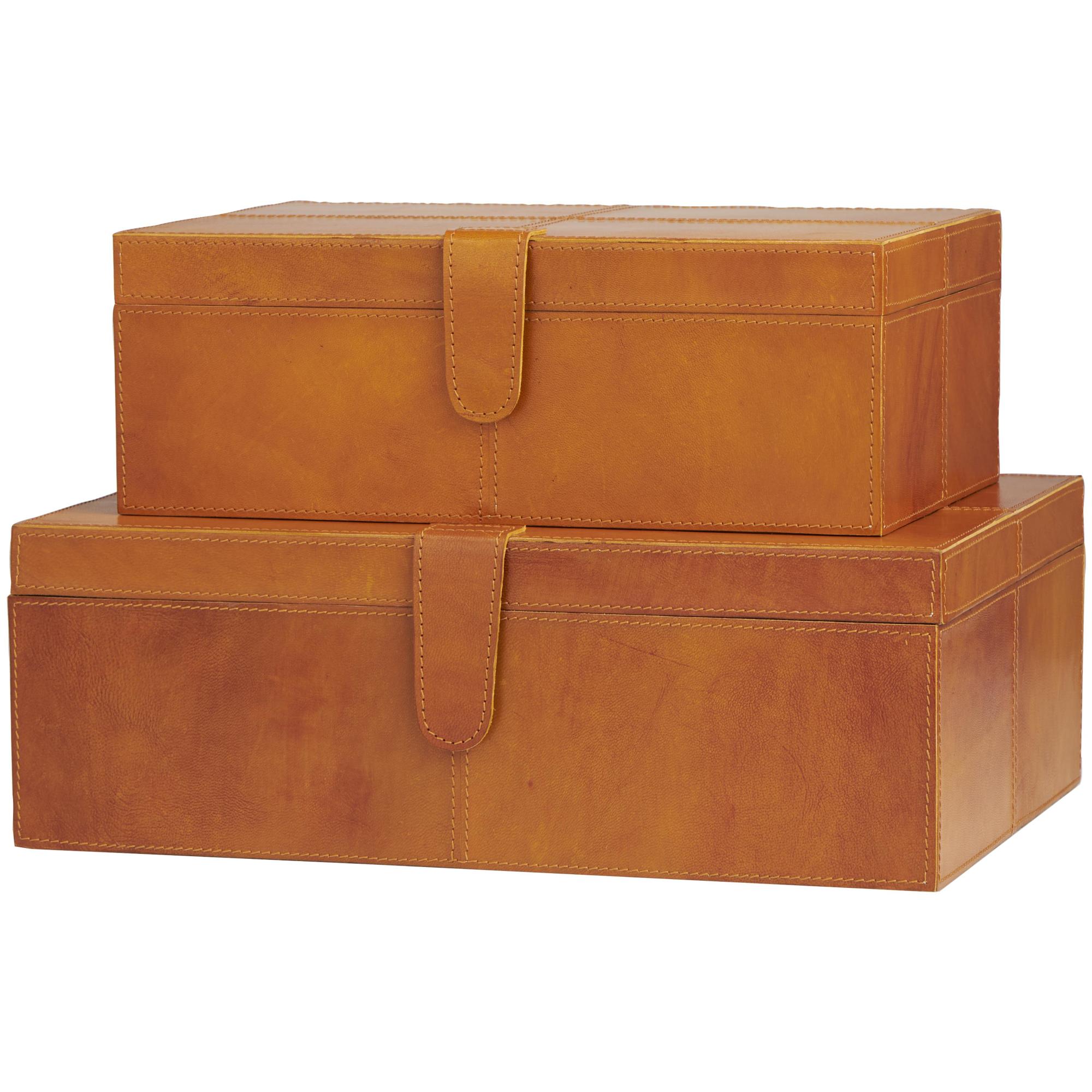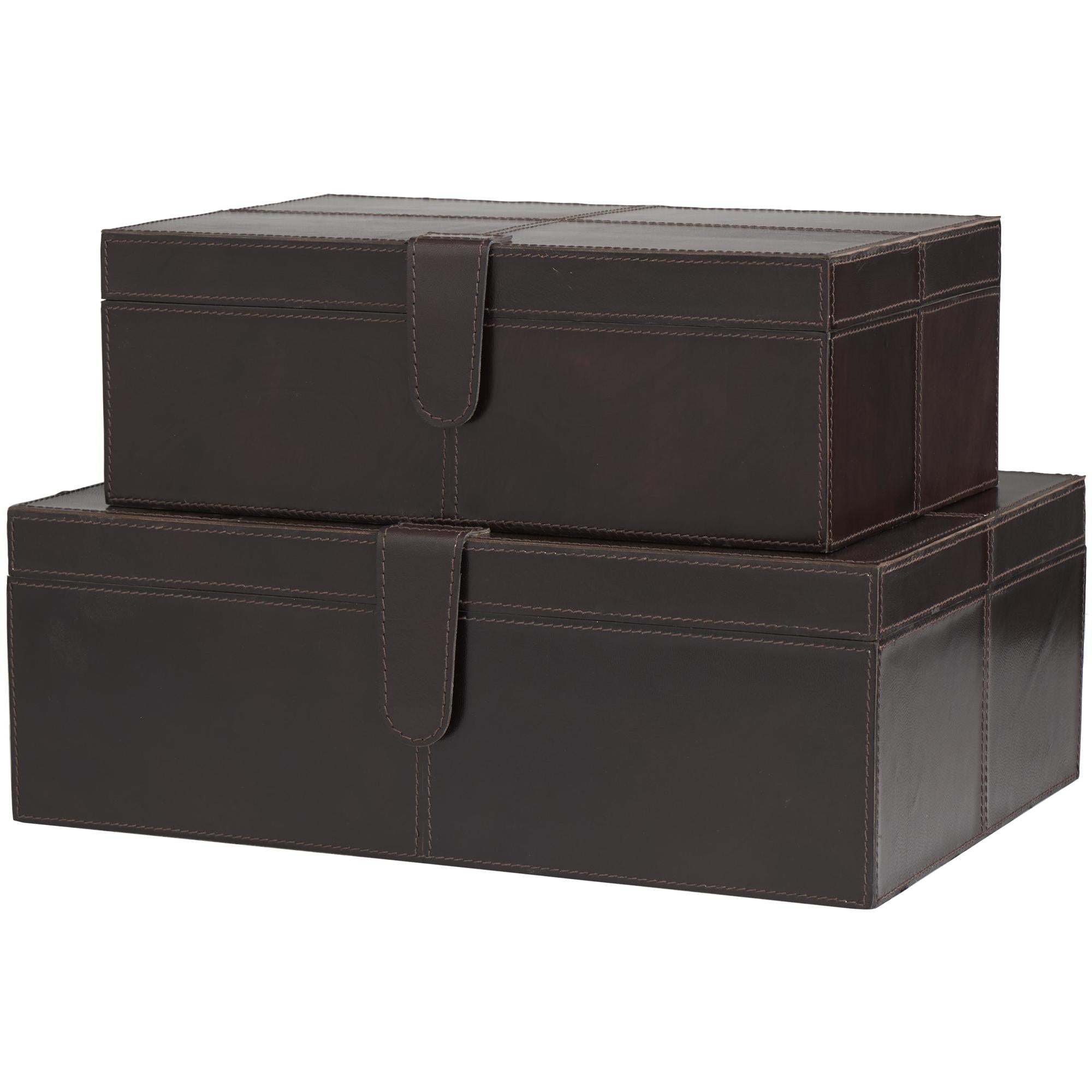 •Leather set of 2 boxes features a convenient lift-open side and secure snap button locks
