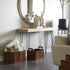 •The modern set of 2 basket for decor has an MDF base covered and sewn with leather for durability