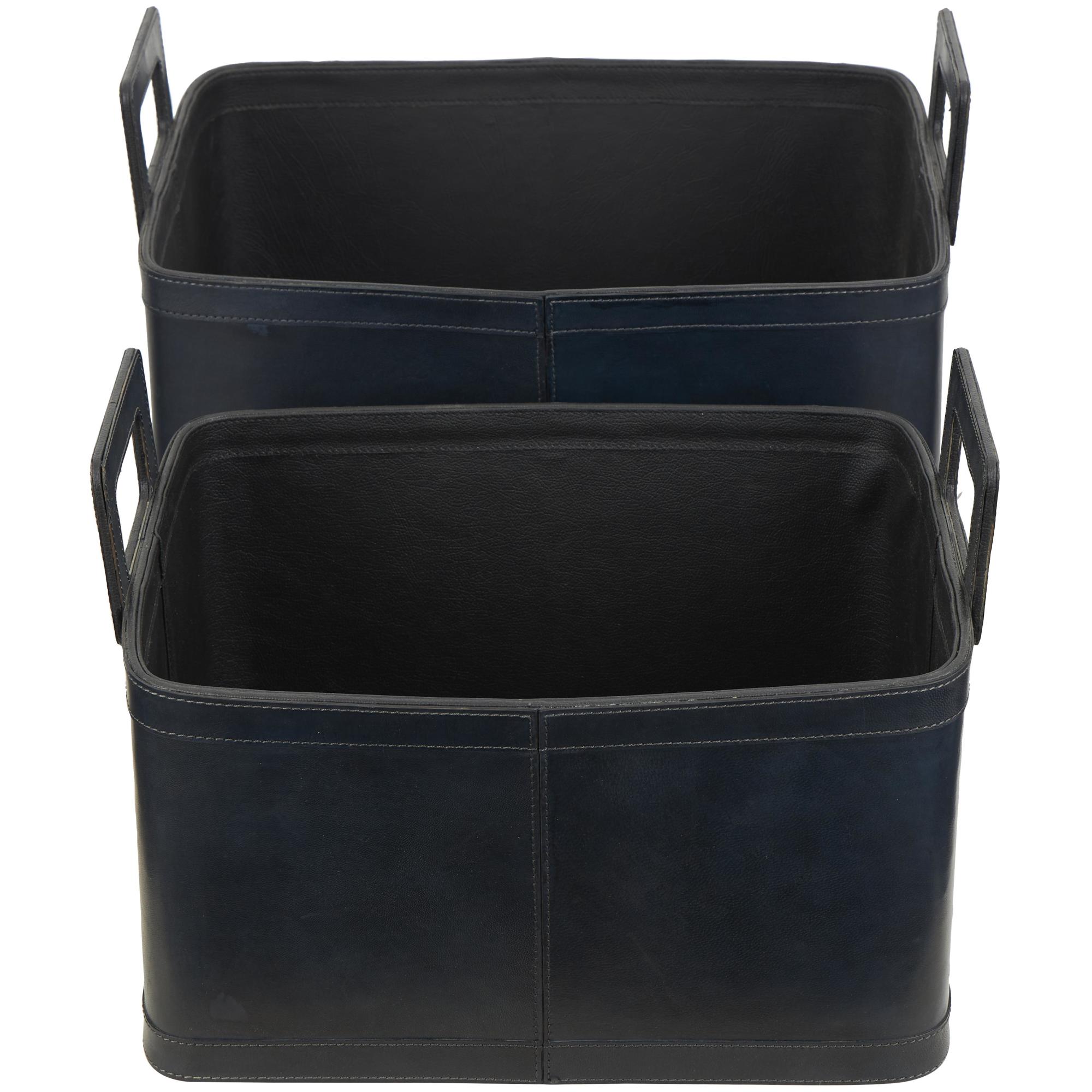 •The leather set of 2 storage baskets features a wide storage space and riveted handles, making it a chic and convenient option