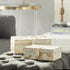 set of 2 decorative keepsake boxes can be used to store personal belongings in the boudoir or to enhance table displays in the living room. Designed with felt or rubber stoppers at the base that prevent scratching furniture and table tops, as well as sliding around. This item ships in 1 carton. Leather box makes a great gift for any occasion. Due to the handmade nature of this item, no two will be alike, there will be slight differences in shape, size, and color. Suitable for indoor use only. This item ships fully assembled in one piece. Leather and hair on hide are natural products, and therefore no two will be alike. There may slight variations in pattern, natural blemishes, colors, and overall aesthetic of the product. Made in India. This leather decorative keepsake box comes as a set of 2. Glam style.