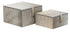 •Each leather box measures 9.9L x 10.15W x 6.05H , 7.95L x 8.15W x 4.35H inches, and collectively weighs 3.075 lbs