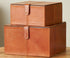 Set of 2 Leather Handmade Storage Decorative Box with Snap Front Closure and Detailed Stitching