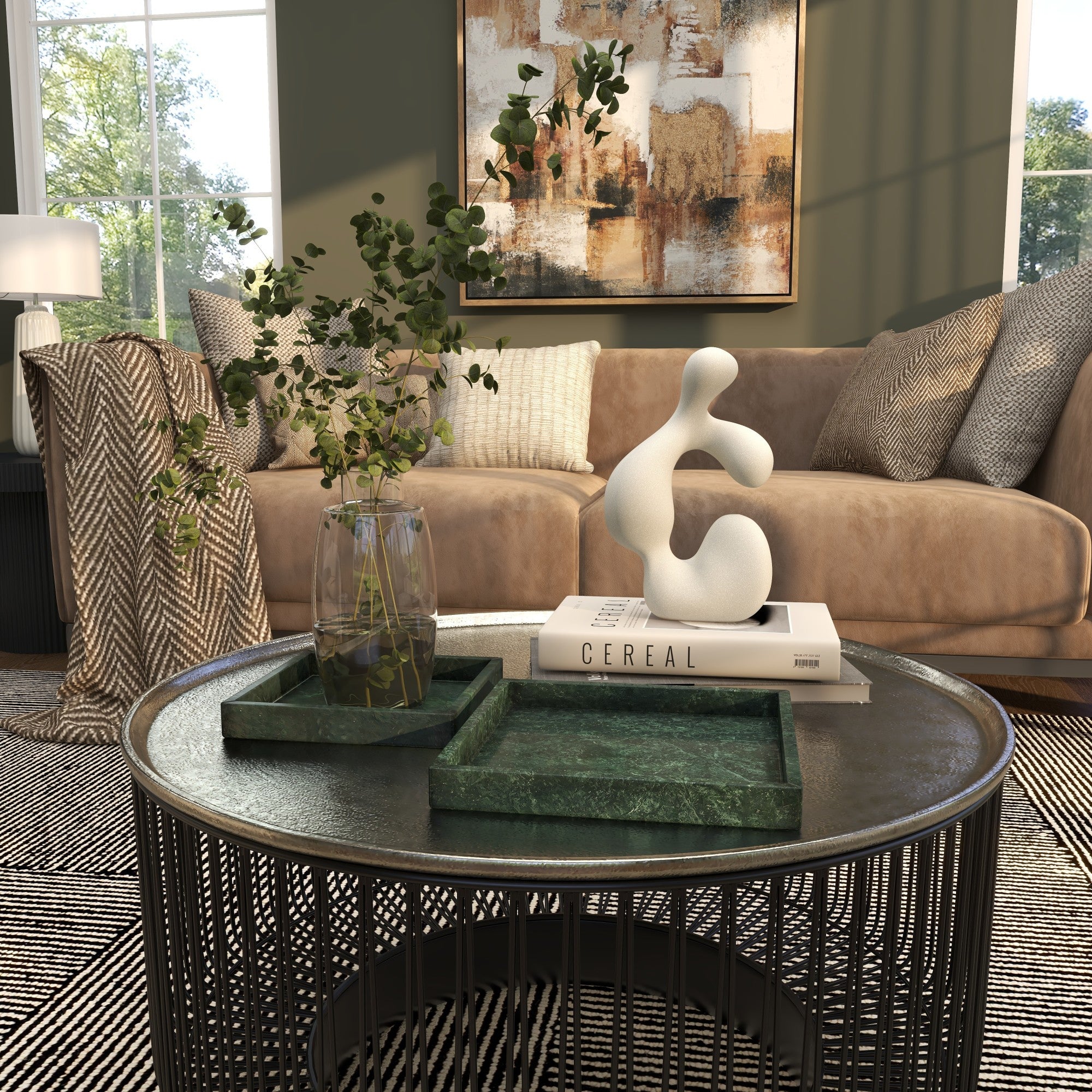 •Marble gives these trays solid and durable forms in this living room decor tray set