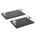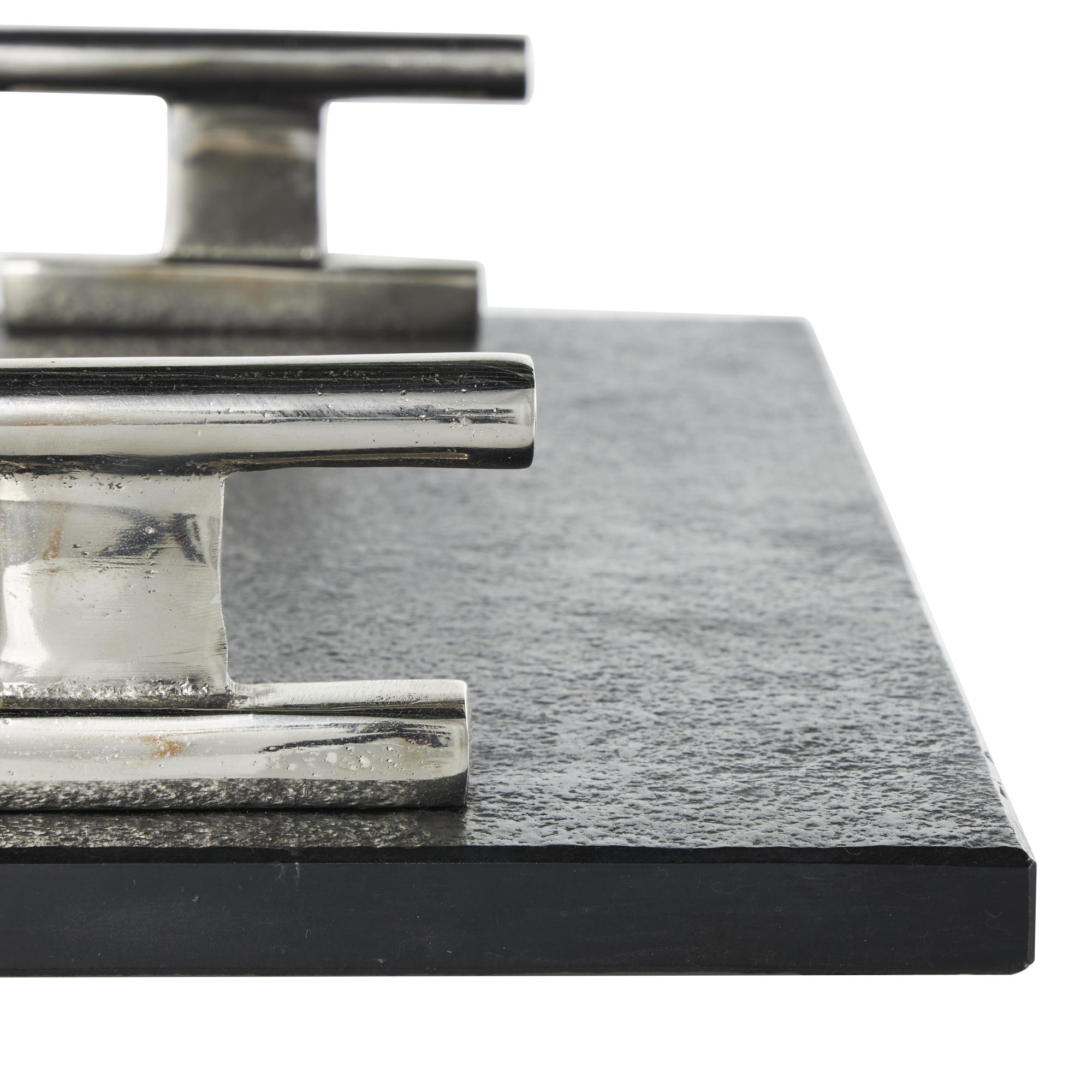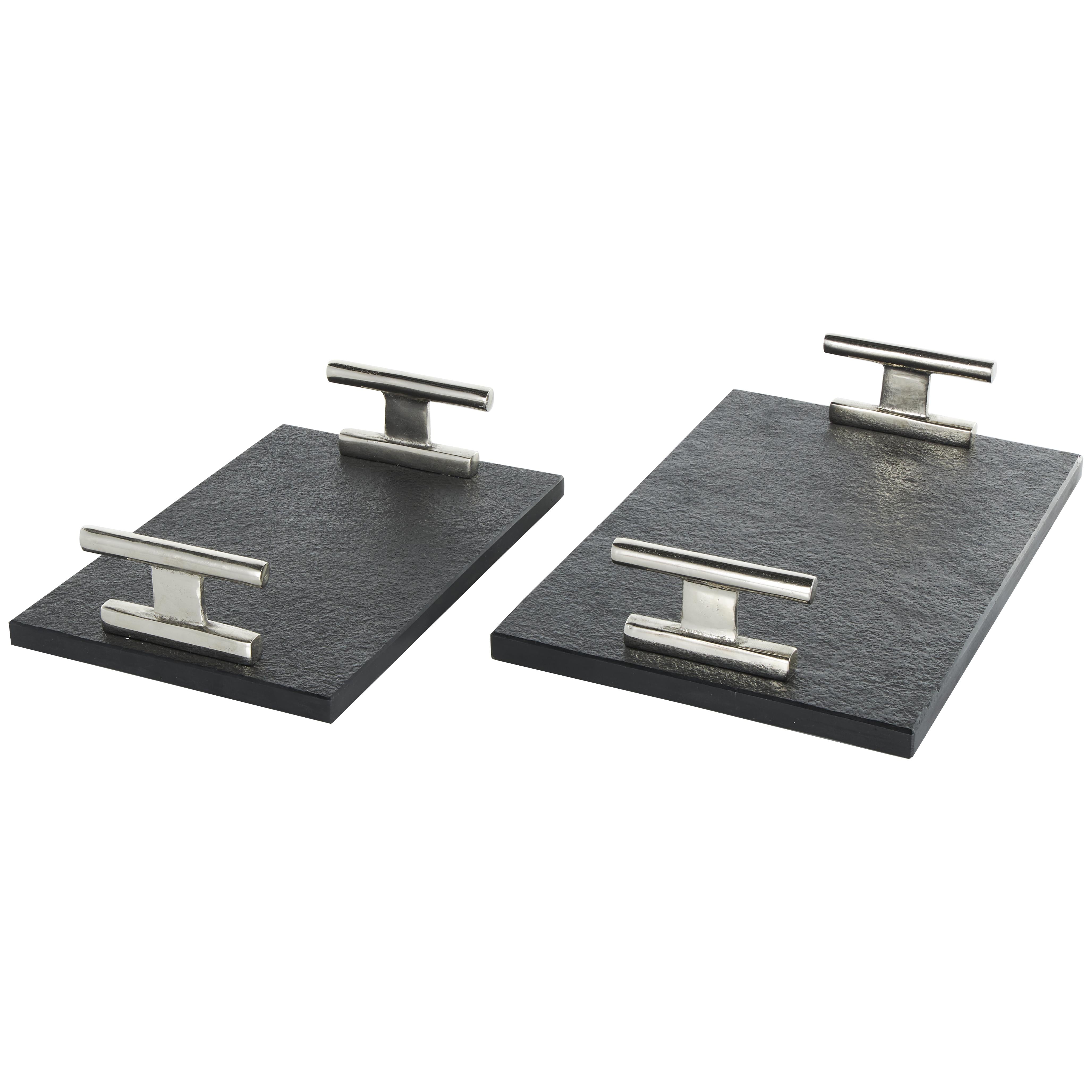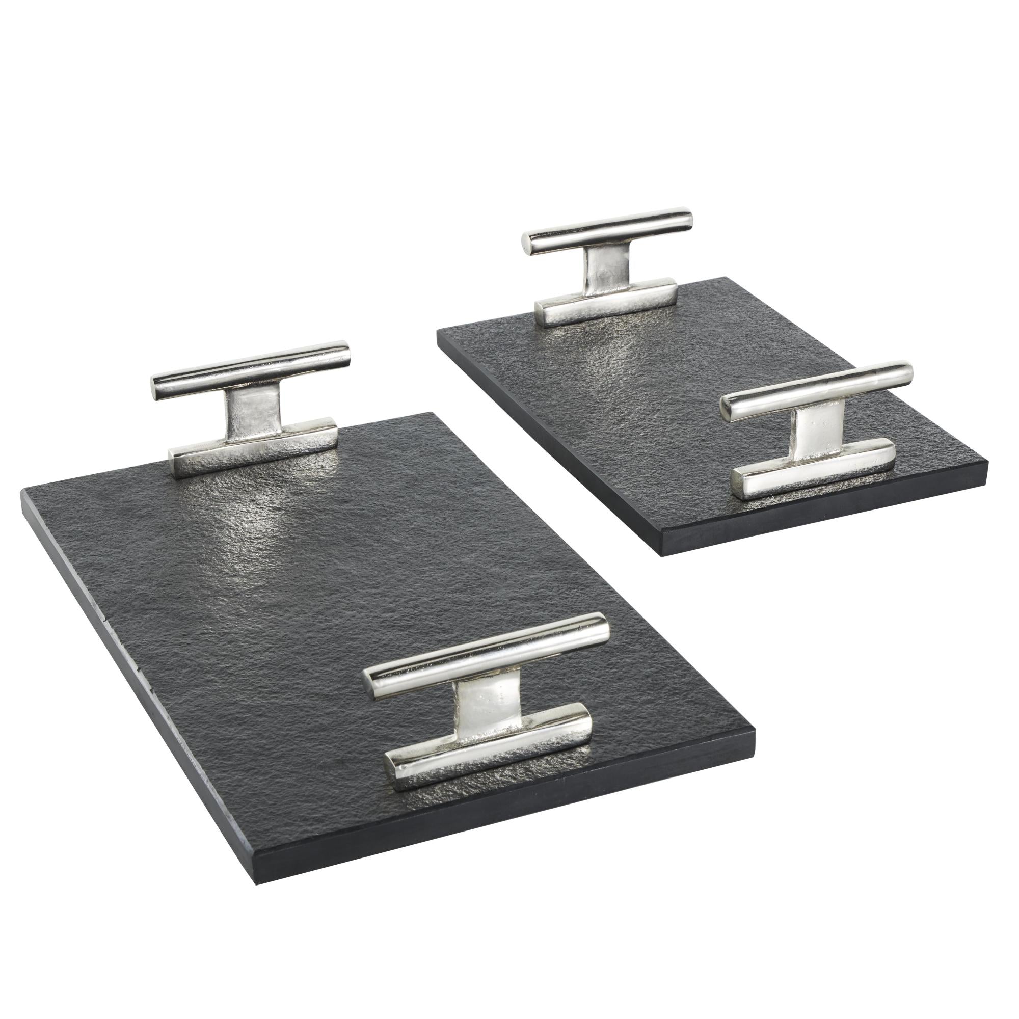 •The modern set of 2 multipurpose tray features meticulously shaped and polished marble, with welded aluminum handles attached