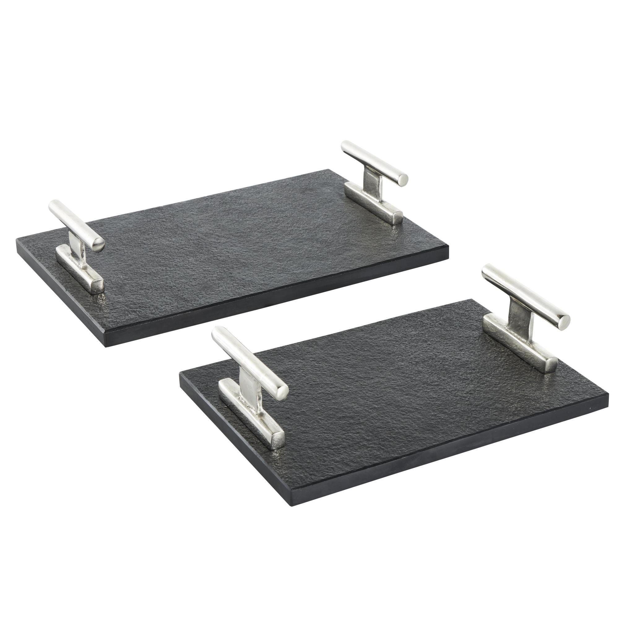 Set of 2 Marble Slim Textured Living Room Decor Tray with Rod Handles Set of 2 22", 18"W