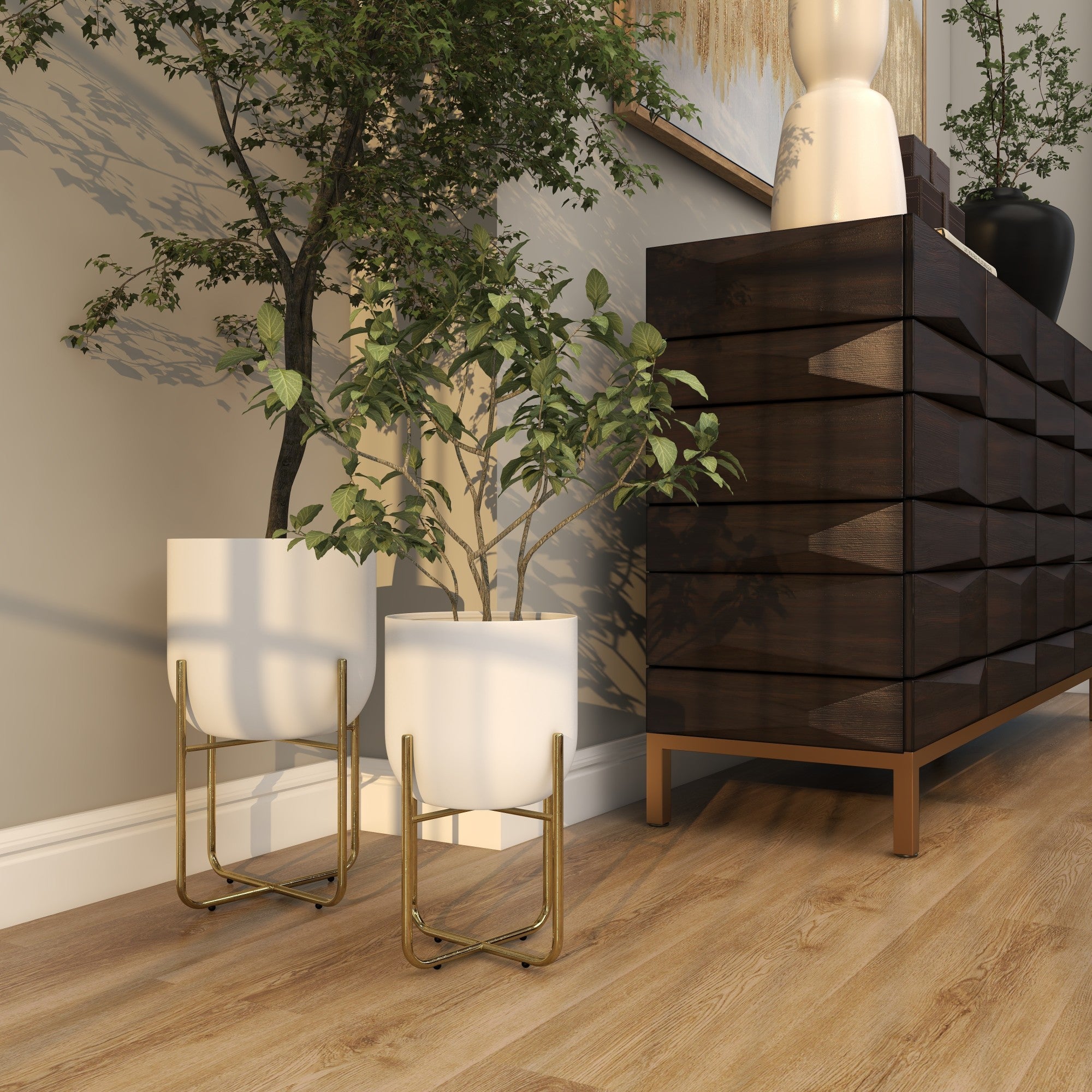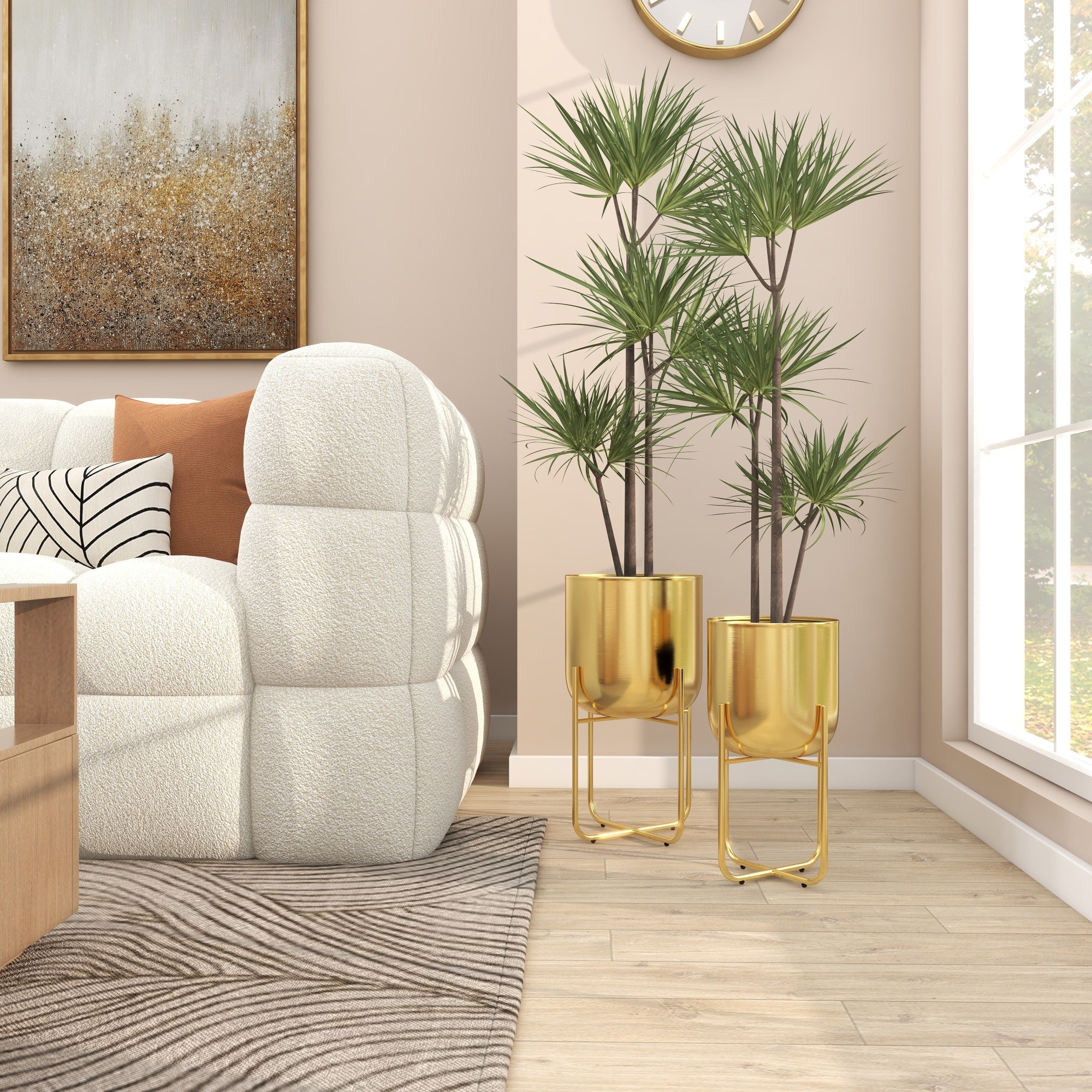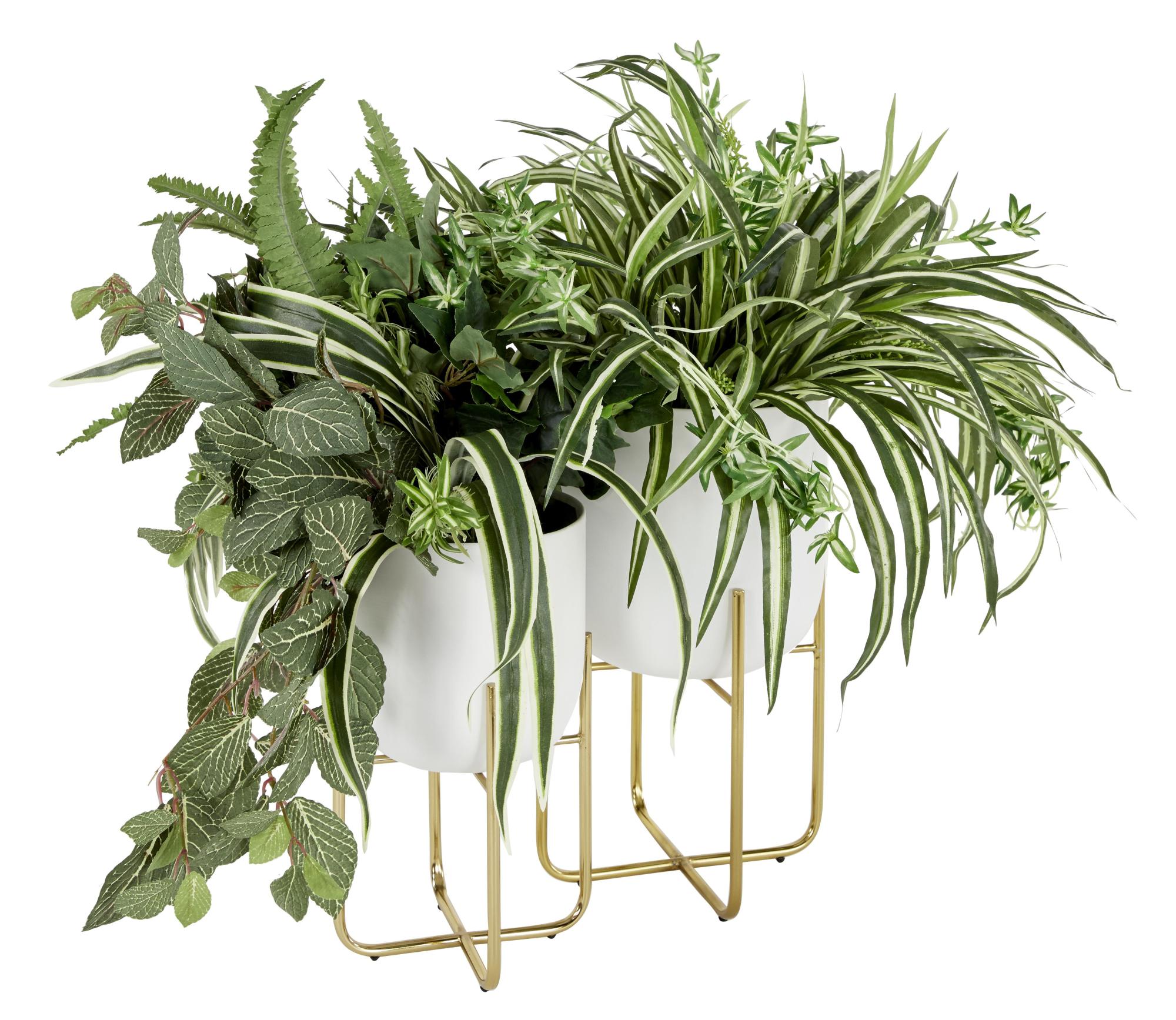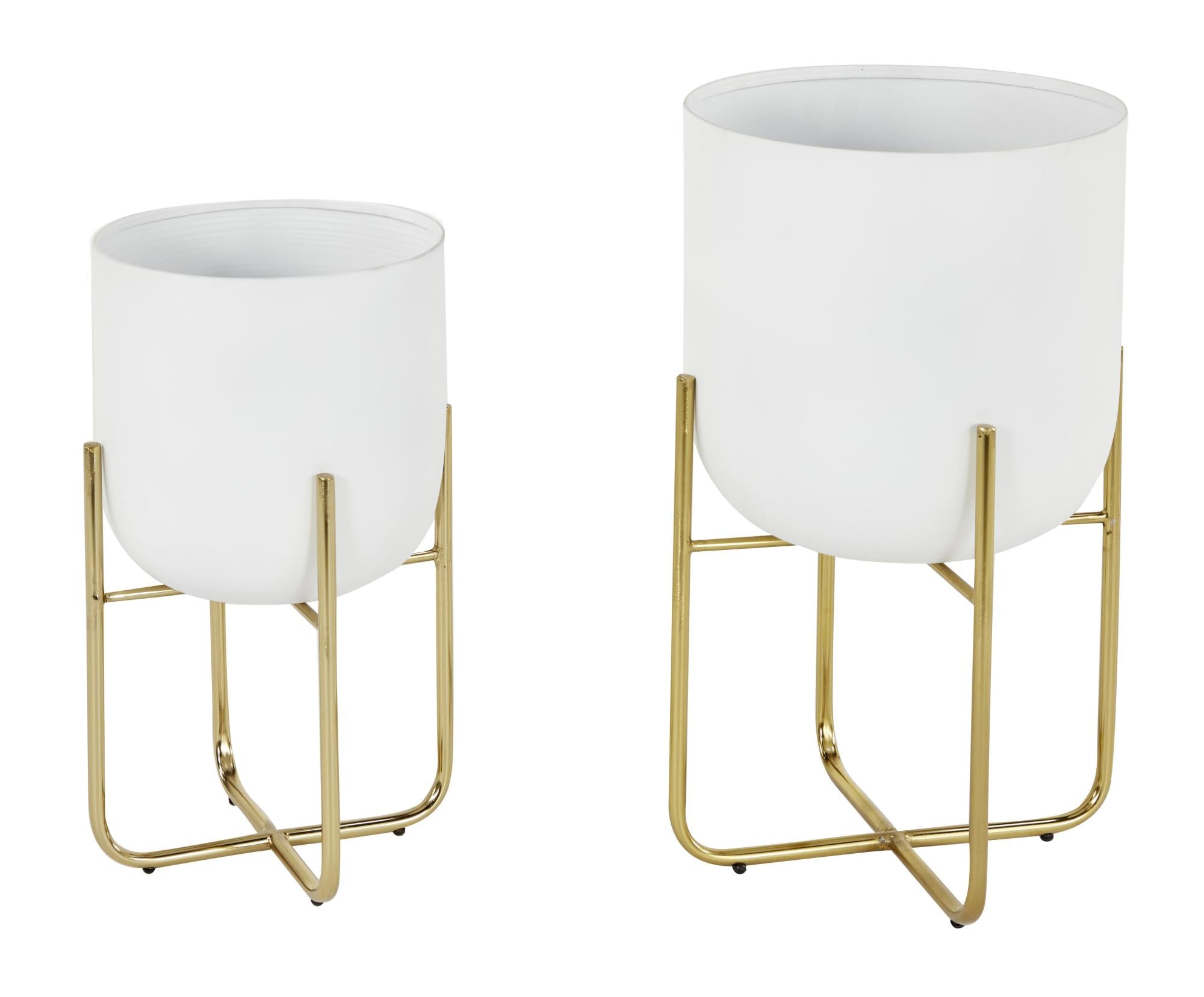 •Metal set of 2 planters features removable stands, allowing for flexibility in display and arrangement