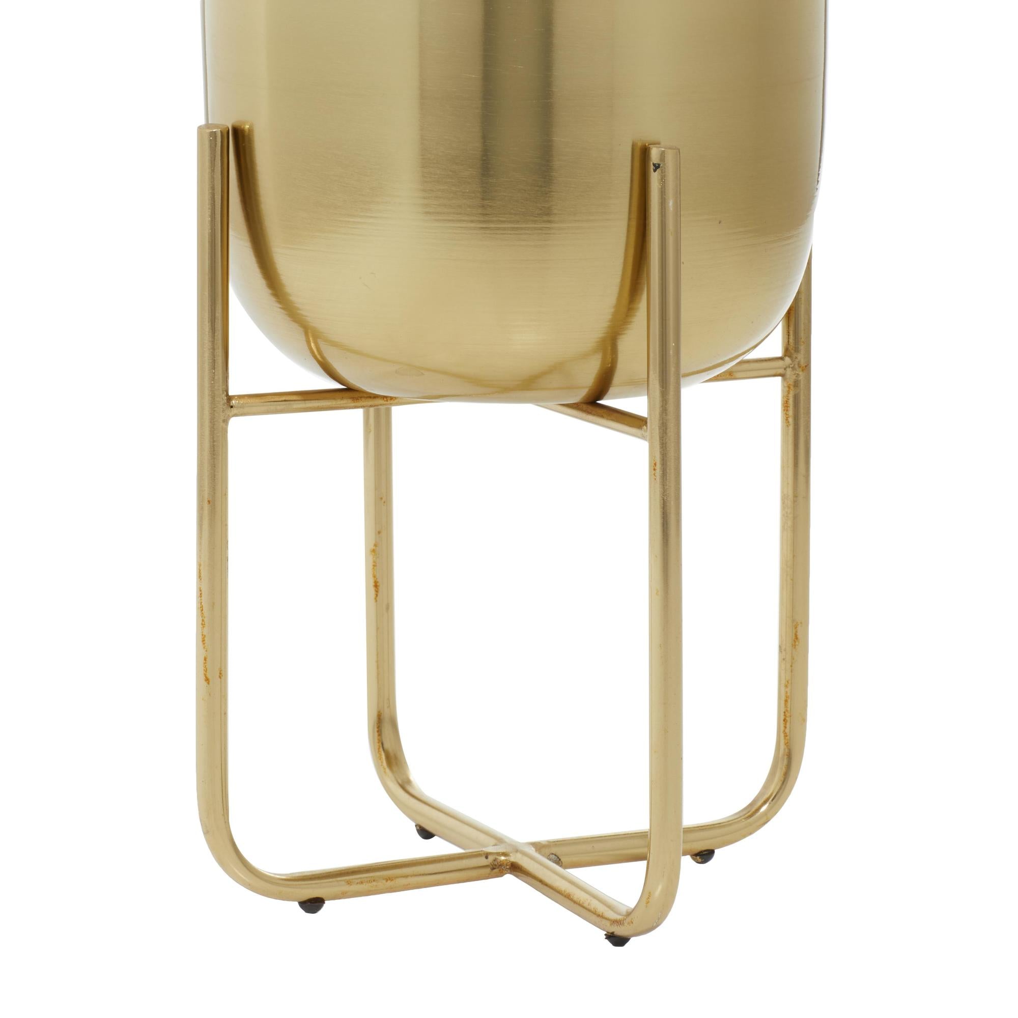 Set of 2 Metal Brushed Dome Indoor Outdoor Planter with Curved X-Shaped Stands