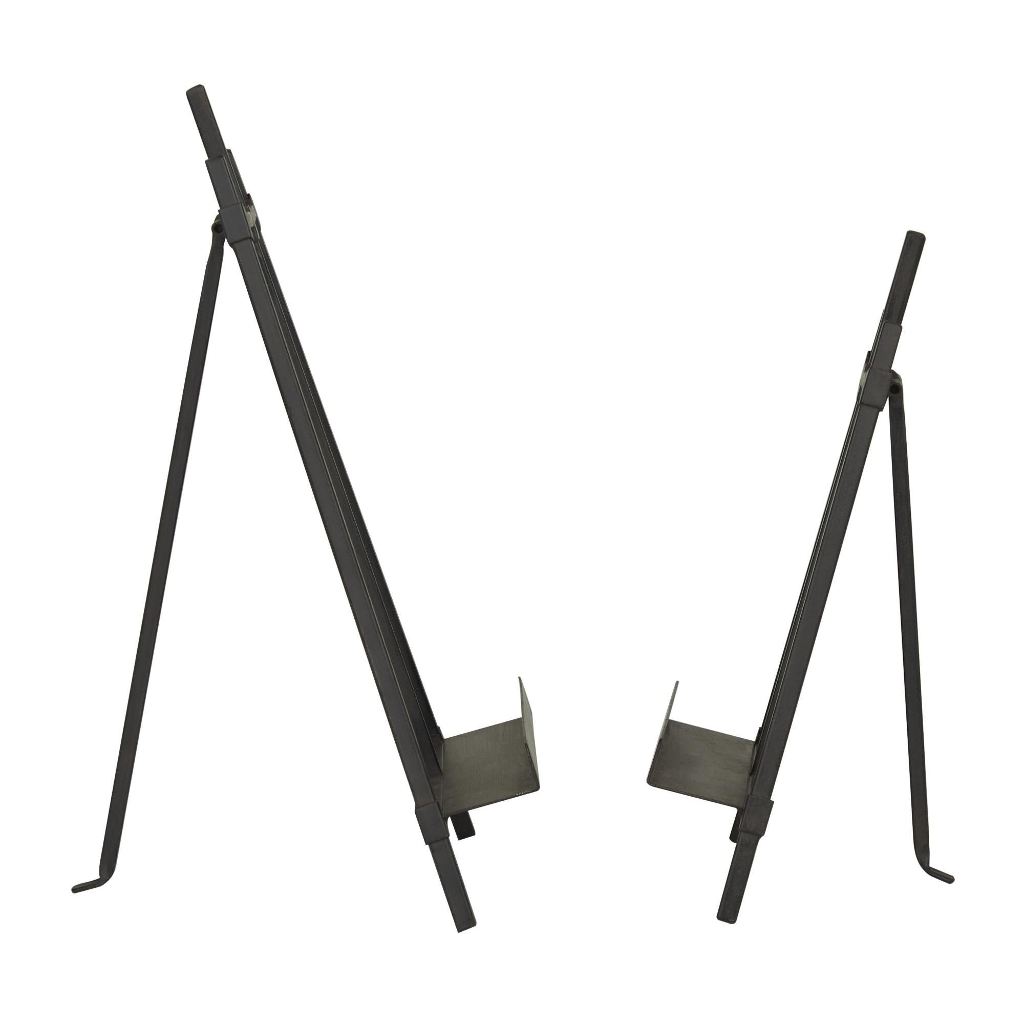Give your surface space a finishing touch with these beautifully crafted easels. Durable and sturdy, this easel lets you display your favorite things with ease, and with out overshadowing your piece. Flaunt your paintings or any artwork on canvas with this set of 2 tabletop easel to enhance your traditional indoor aesthetics. This item ships in 1 carton. Suitable for indoor use only. This item ships fully assembled in one piece. Maximum weight limit is 10 lbs. This metal tabletop easel comes as a set of 2. Traditional style.