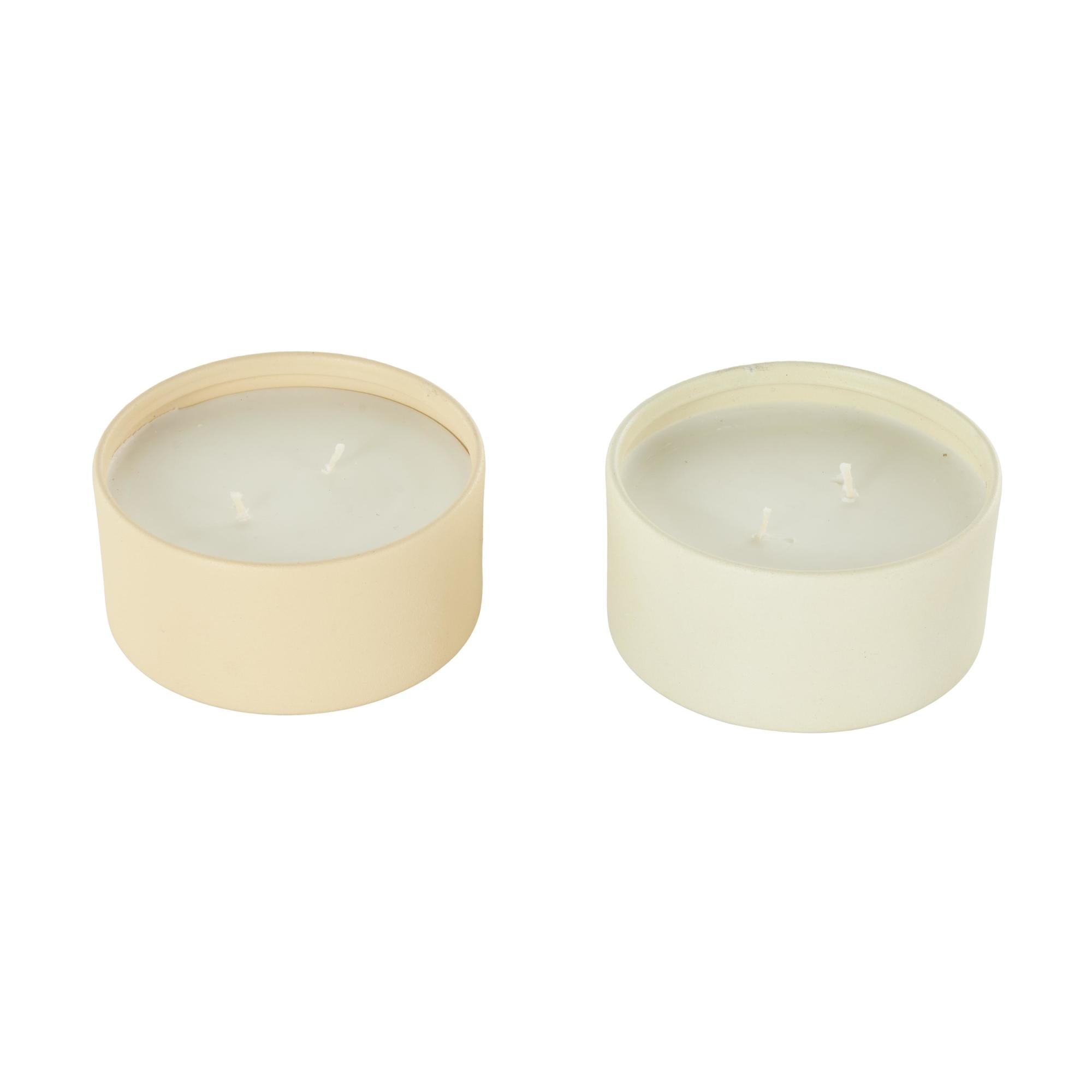 This set of 2 candles is perfect for bringing light and a wonderful scent to living rooms, bedrooms, or bathrooms. Designed with felt or rubber stoppers at the base that prevent scratching furniture and table tops, as well as sliding around. Features 2 Fresh Cotton scented paraffin and palm wax candles, each with 2 wicks and a 25 hr burning time. Fresh Cotton scented candle composed of citrus and floral notes with a musky, creamy vanilla base; Tea & Ginger scented candle composed of a refreshing blend of citrus, ginger, and cedarwood. This item ships in 1 carton. Multi metal containers each hold a 9 oz wax candle. Metal candle makes a great gift for any occasion. Suitable for indoor use only. This item ships fully assembled in one piece. Made in India. This metal aromatherapy candle comes as a set of 2. Modern style.