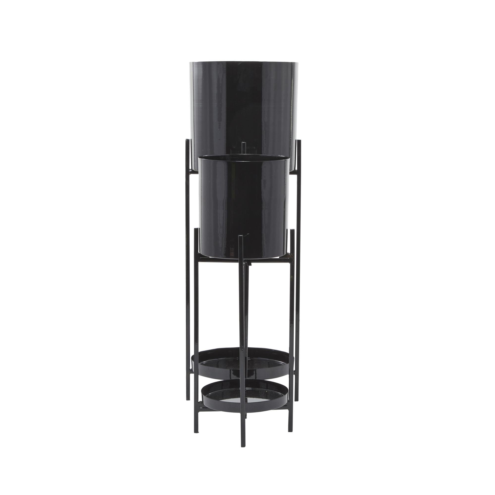•Metal set of 2 planters features a removable stand, providing versatility in display options