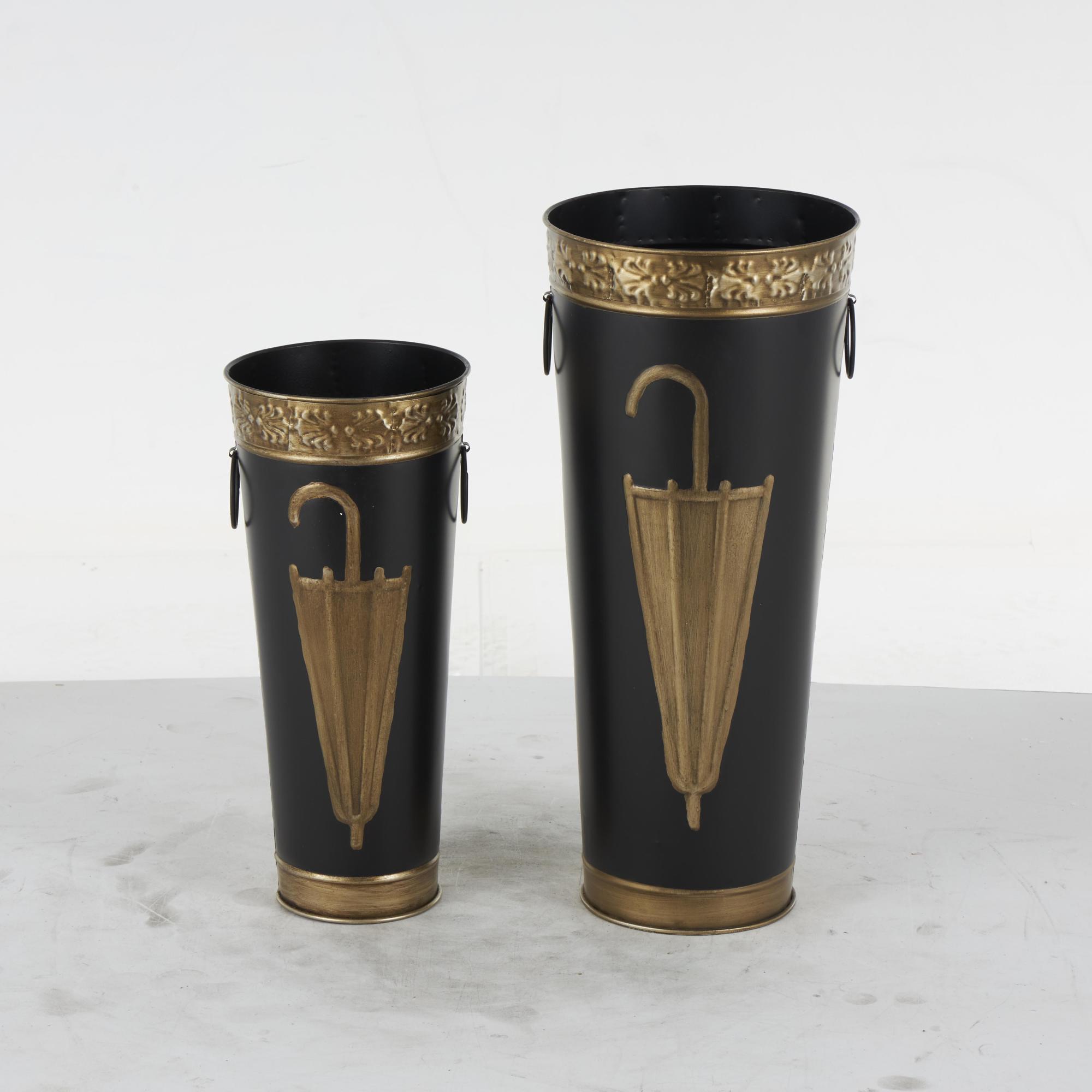 Ideal for any entryway or foyer, this set of 2 entryway umbrella holders offers both style and functionality. This item ships in 1 carton. Suitable for indoor use only. This item ships fully assembled in one piece. This iron umbrella holder comes as a set of 2. Modern style.