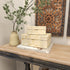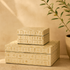 •Crafted from MDF frames and mother of pearl shell covers, this decorative box set embodies sophistication with its material choice