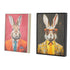 •This eclectic set of 2 framed canvas art is made with canvas painted with an array of colors perfectly capturing rabbits in business suits, showcases meticulous craftsmanship