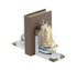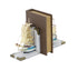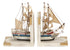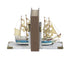 •Wood set of 2 bookends boasts ship sculptures cut at the midsection, placed on L-shaped wood platforms for secure display, adding a nautical touch to any space