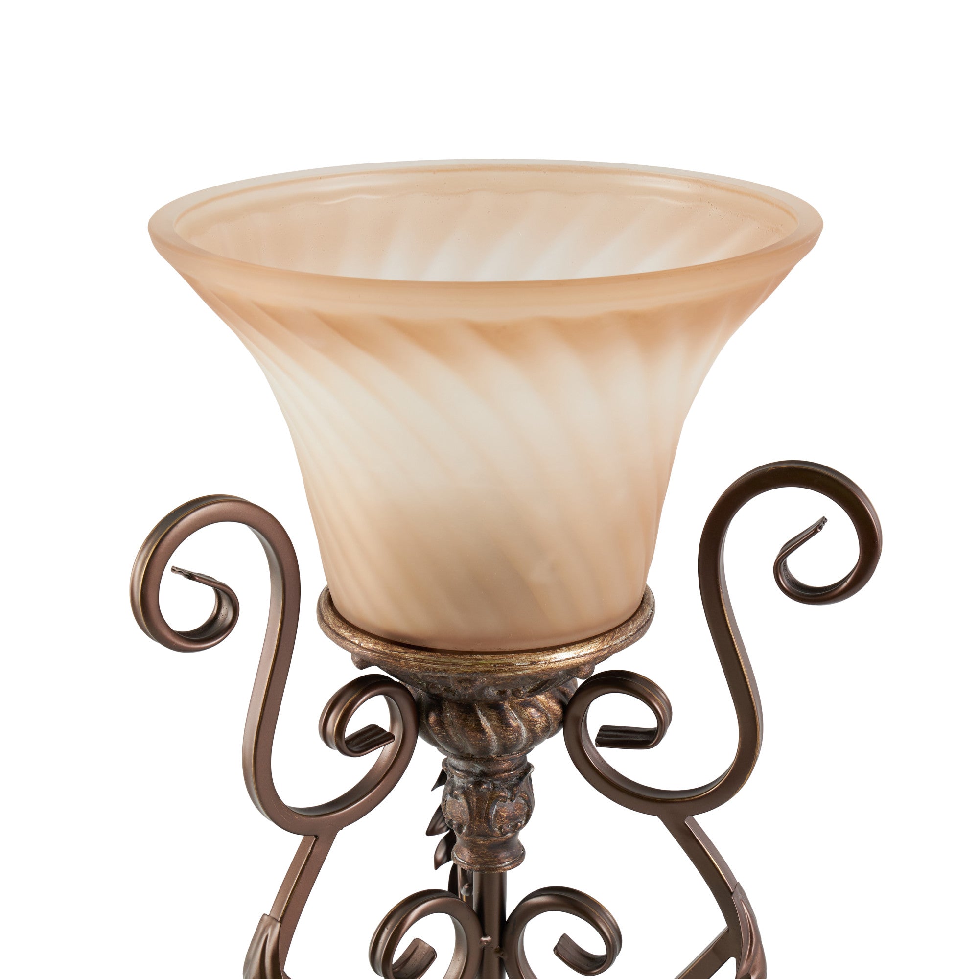 The set of 2 decorative lamps is perfect for spaces with dim lighting or interiors like bedrooms or living room corners to add warmth and style. Designed with felt or rubber stoppers at the base that prevent scratching furniture and table tops, as well as sliding around. Requires 1 60W Type A E26/Medium (Standard) bulb. This item ships in 1 carton. Comes with a 62" cord length. Suitable for indoor use only. This item ships fully assembled in one piece. Uplight comes with a bell shaped shade that measures 12 x 12 x 10 inches. Includes a on/off switch. This iron decorative lamp comes as a set of 2. Mediterranean style.