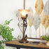 •The satin decorative table lamps feature a wide bell-shaped lamp design and round base with intricate iron carvings to enhance aesthetics