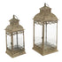 •The rustic set of 2 candle holder lantern features precisely cut and shaped metal frame with intricate patterns, encasing the glass panels