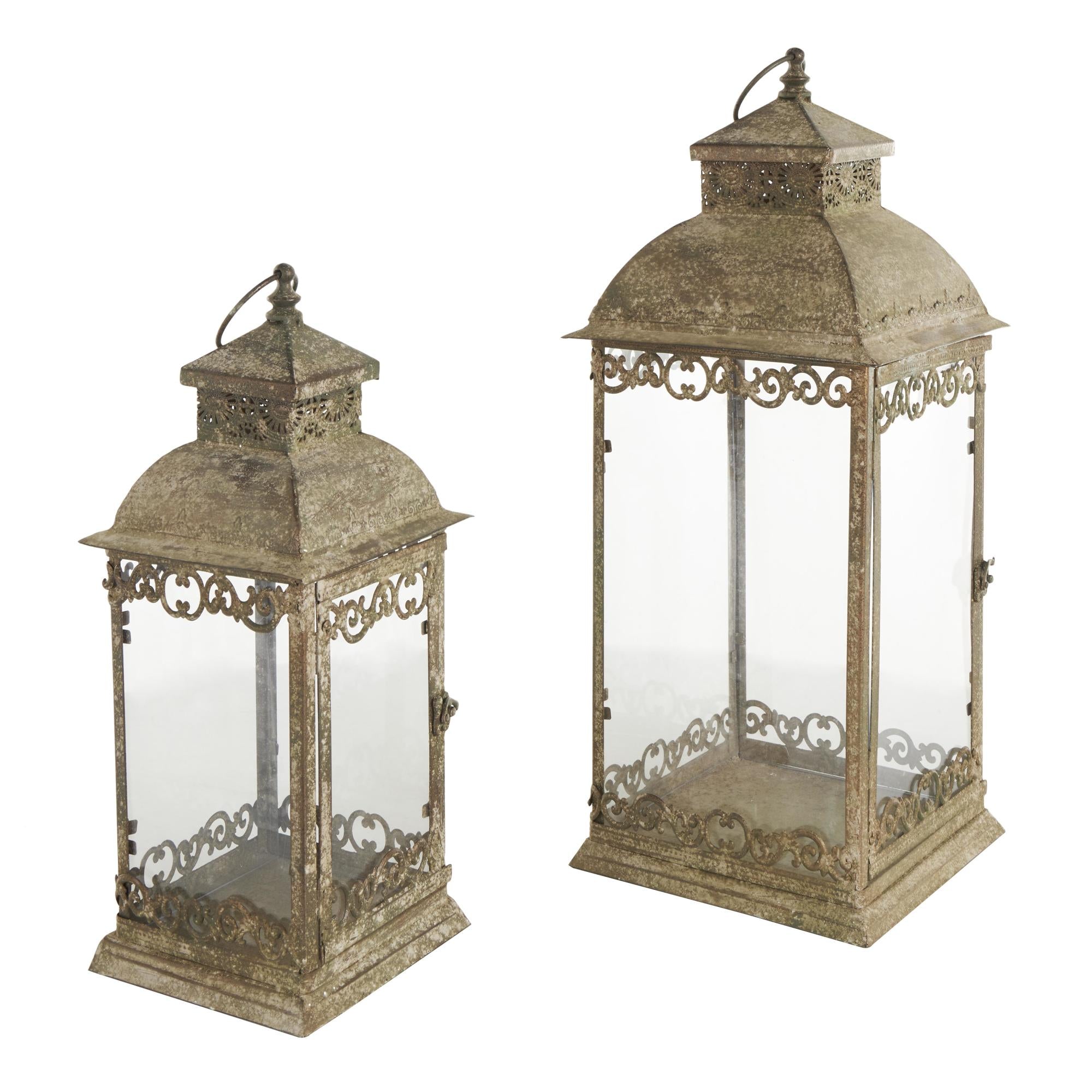 Enhance the ambiance of your living room by placing this set of 2 lantern candle holder on a console or hanging it to create a warm and inviting atmosphere. Can hold 2 pillar candles, not included. This item ships in 1 carton. Please note that this item is for decorative use only. Metal candle lantern makes a great gift for any occasion. Suitable for indoor use only. This item ships fully assembled in one piece. This metal decorative candle lantern comes as a set of 2. Rustic style.