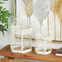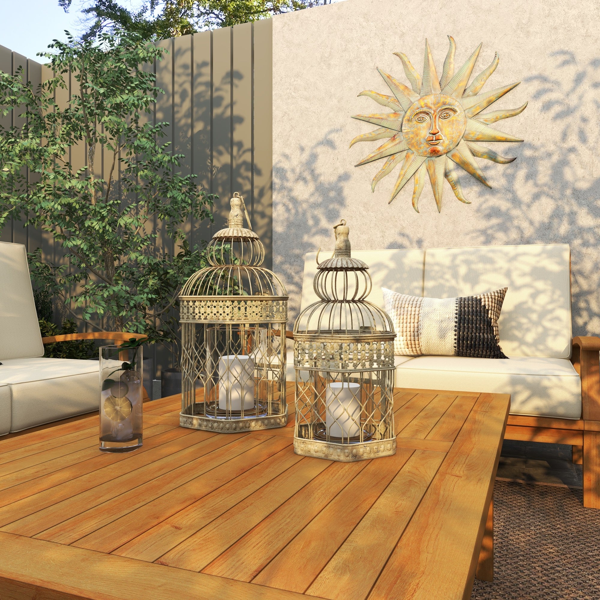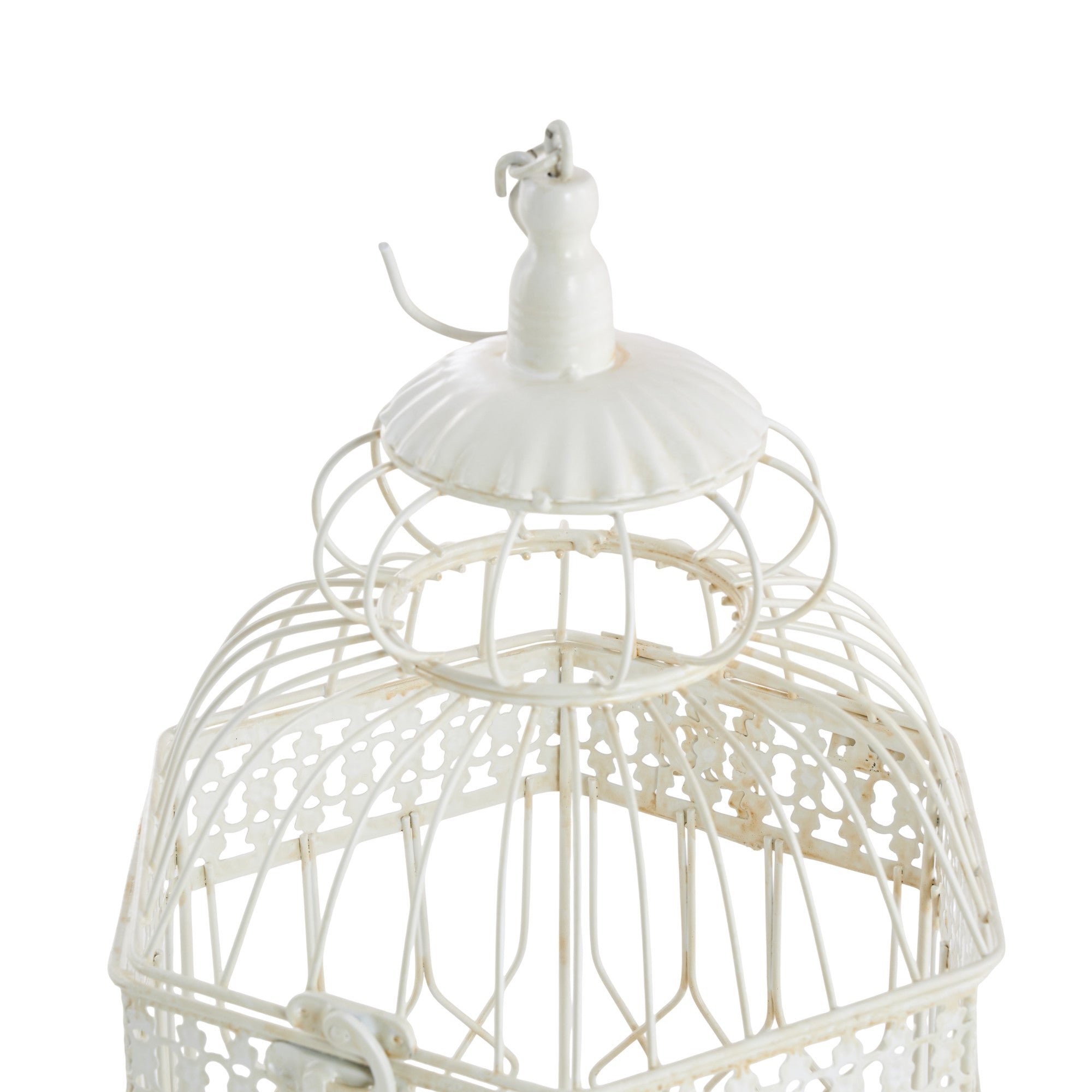 Jazz up vintage themed spaces with these charming home decor accent pieces that are ideal for both indoor and outdoor use. These bird cages look great on tables and ceilings, especially when filled with flowers, garland, or more. Distressed metal birdcages perfect to place on top of wooden accent or console table to highlight its classic style. This item ships in 1 carton. Suitable for indoor use only. This item ships fully assembled in one piece. This iron decorative candle lantern comes as a set of 2. Vintage style.