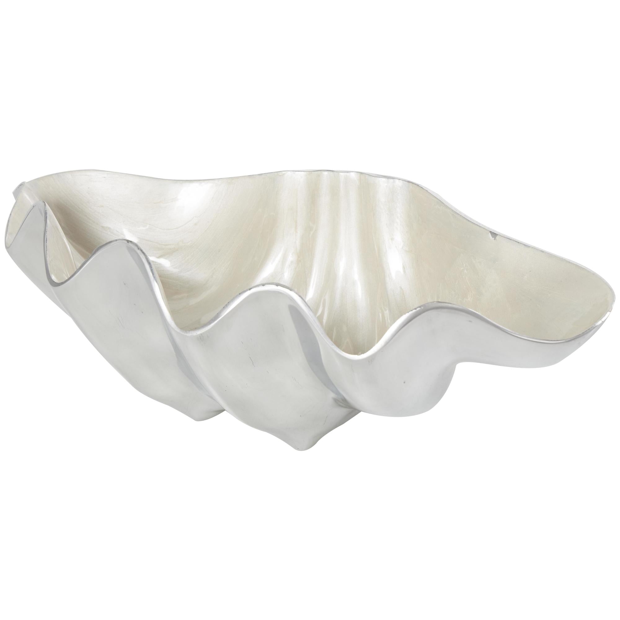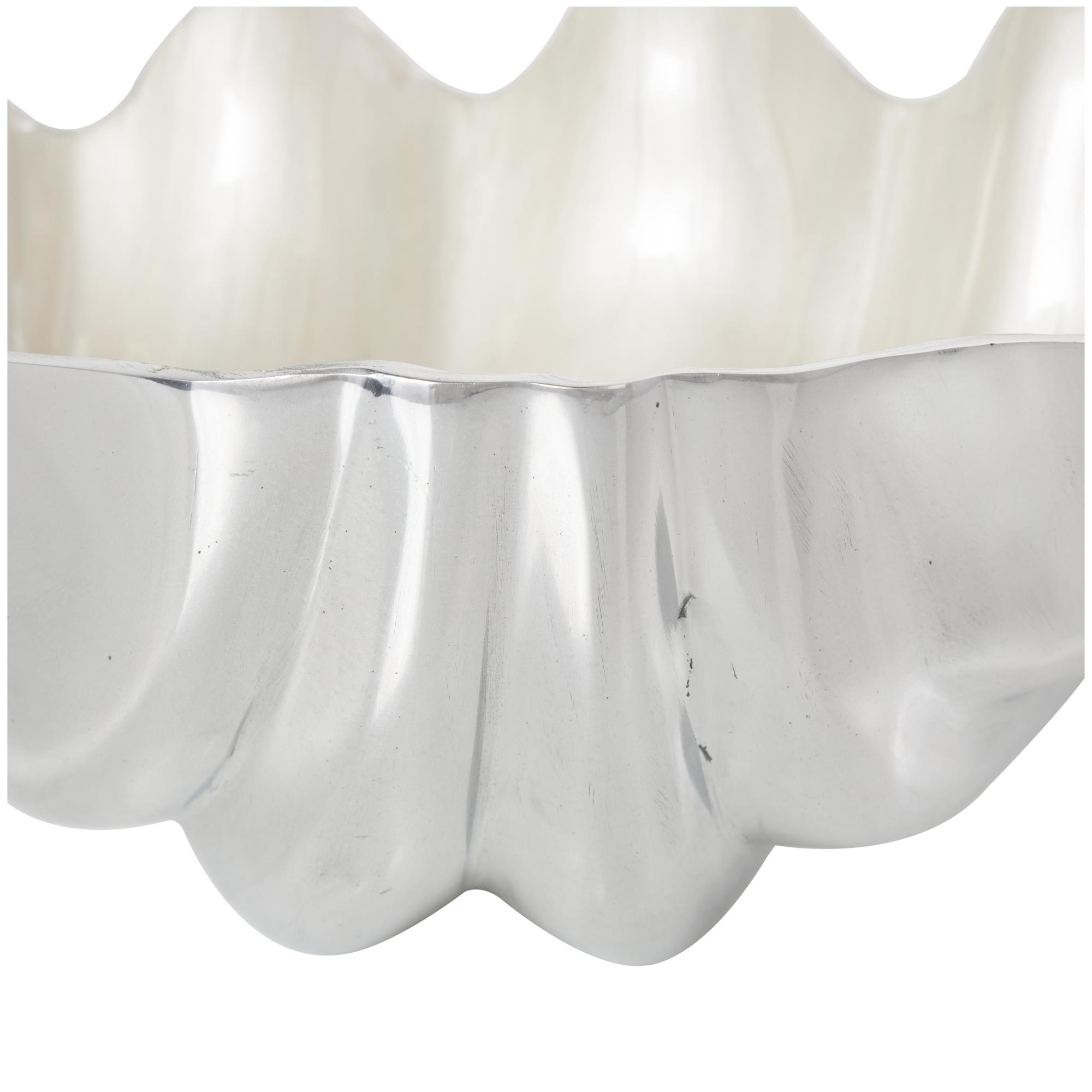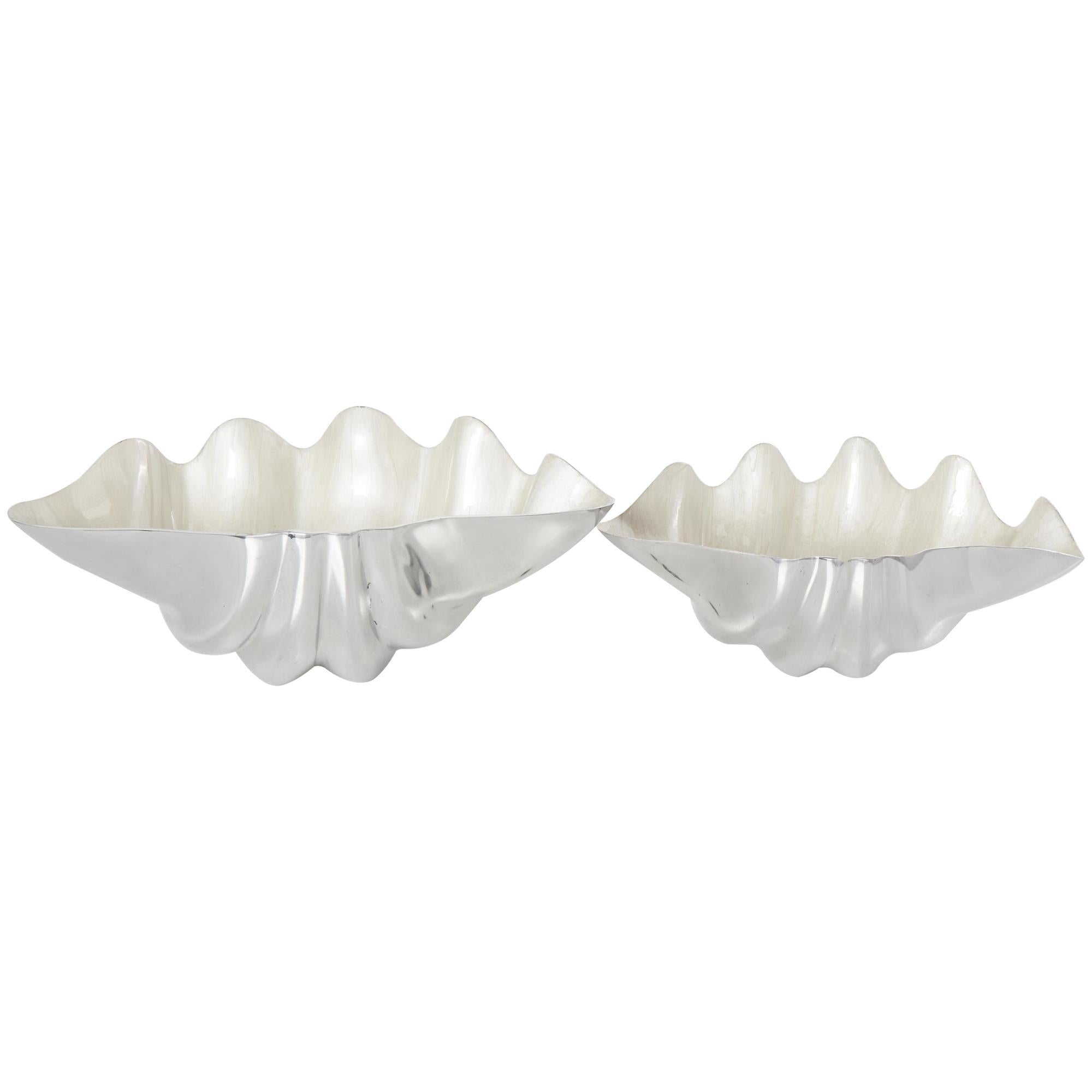 Set of 2 Shell Aluminum Metal Enameled Large Decorative Bowl with Silver Metal Exterior