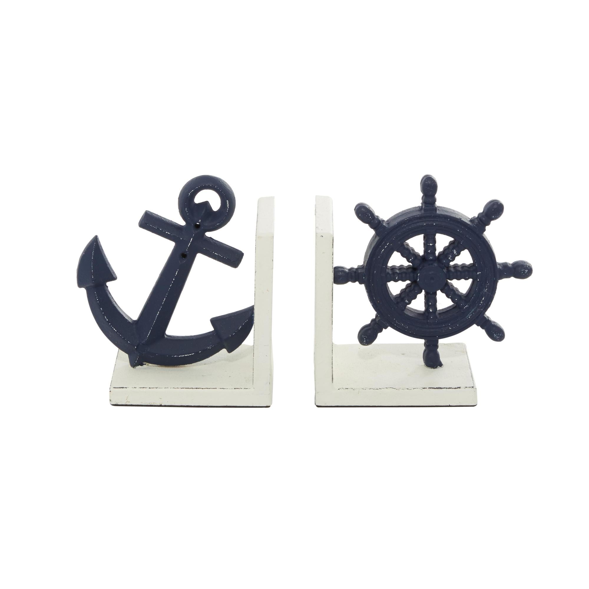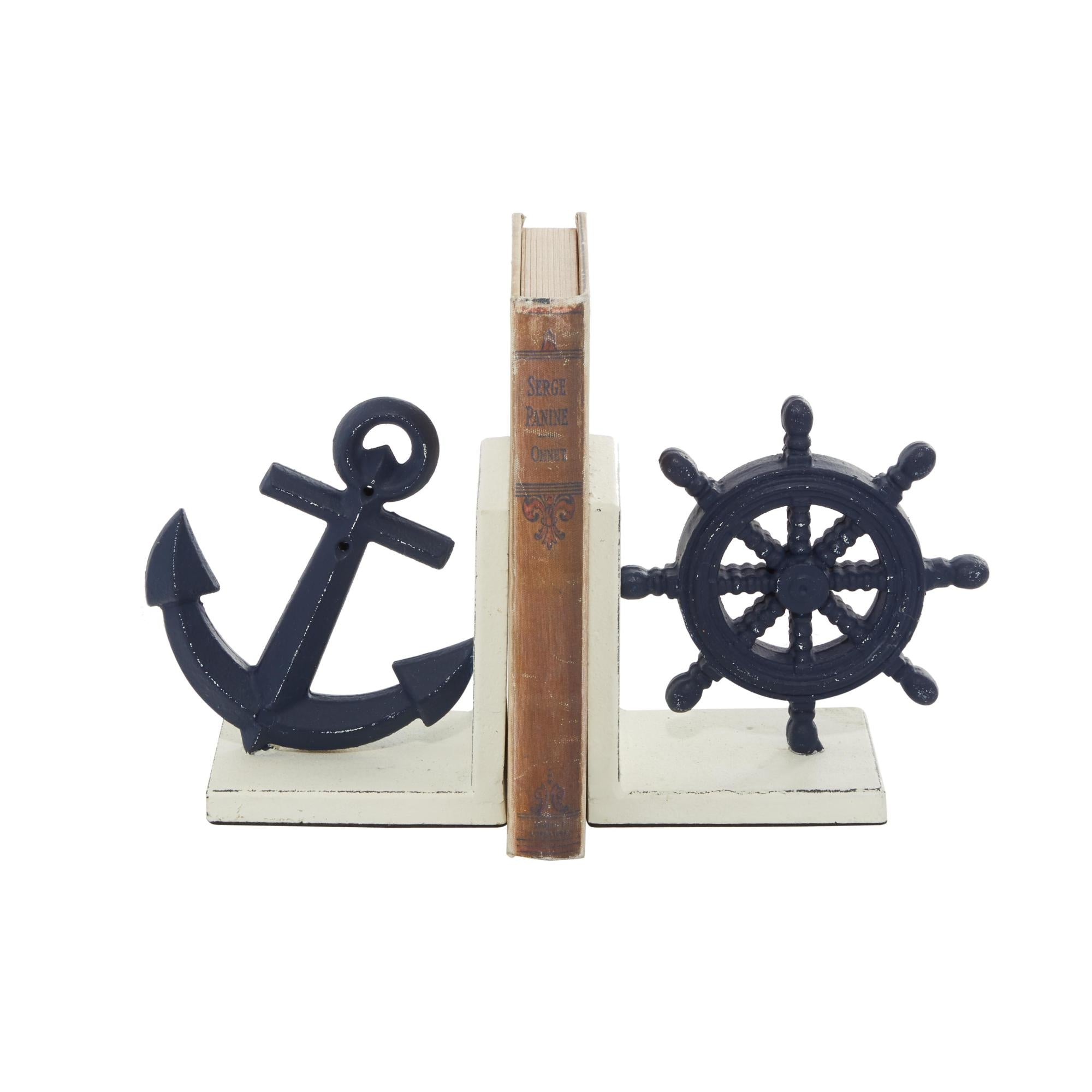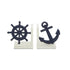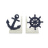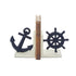 Set of 2 Ship Wheel Blue Metal Anchor Decorative Bookends
