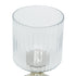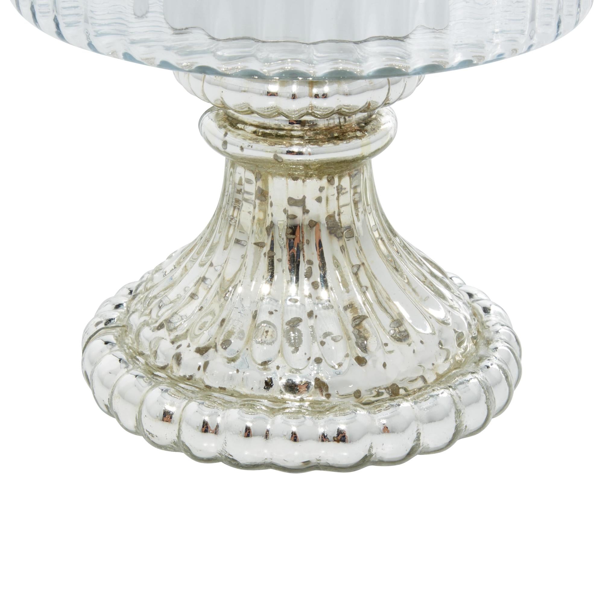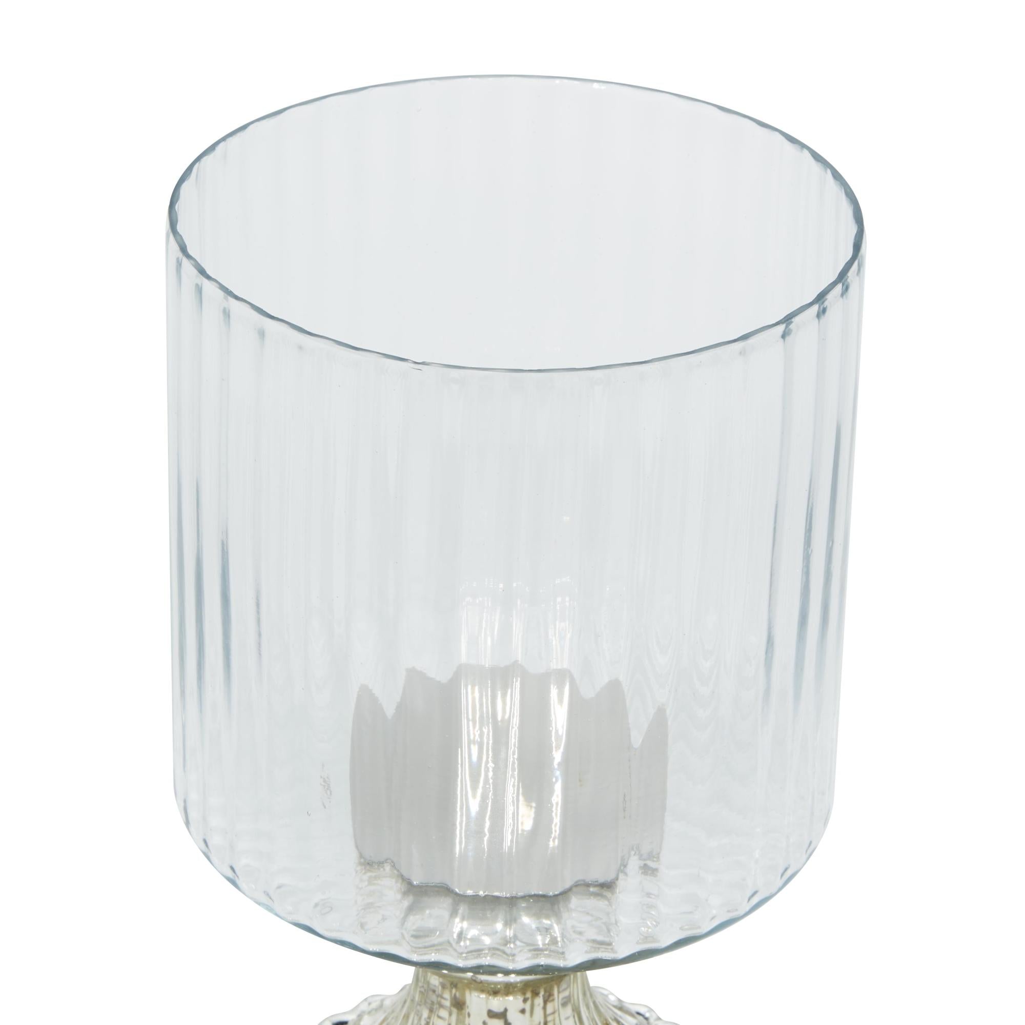 •The mercury hurricane glass candle holders boast cylindrical shades with vertical striped patterns and round tapered bases with beaded details and speckled patterns
