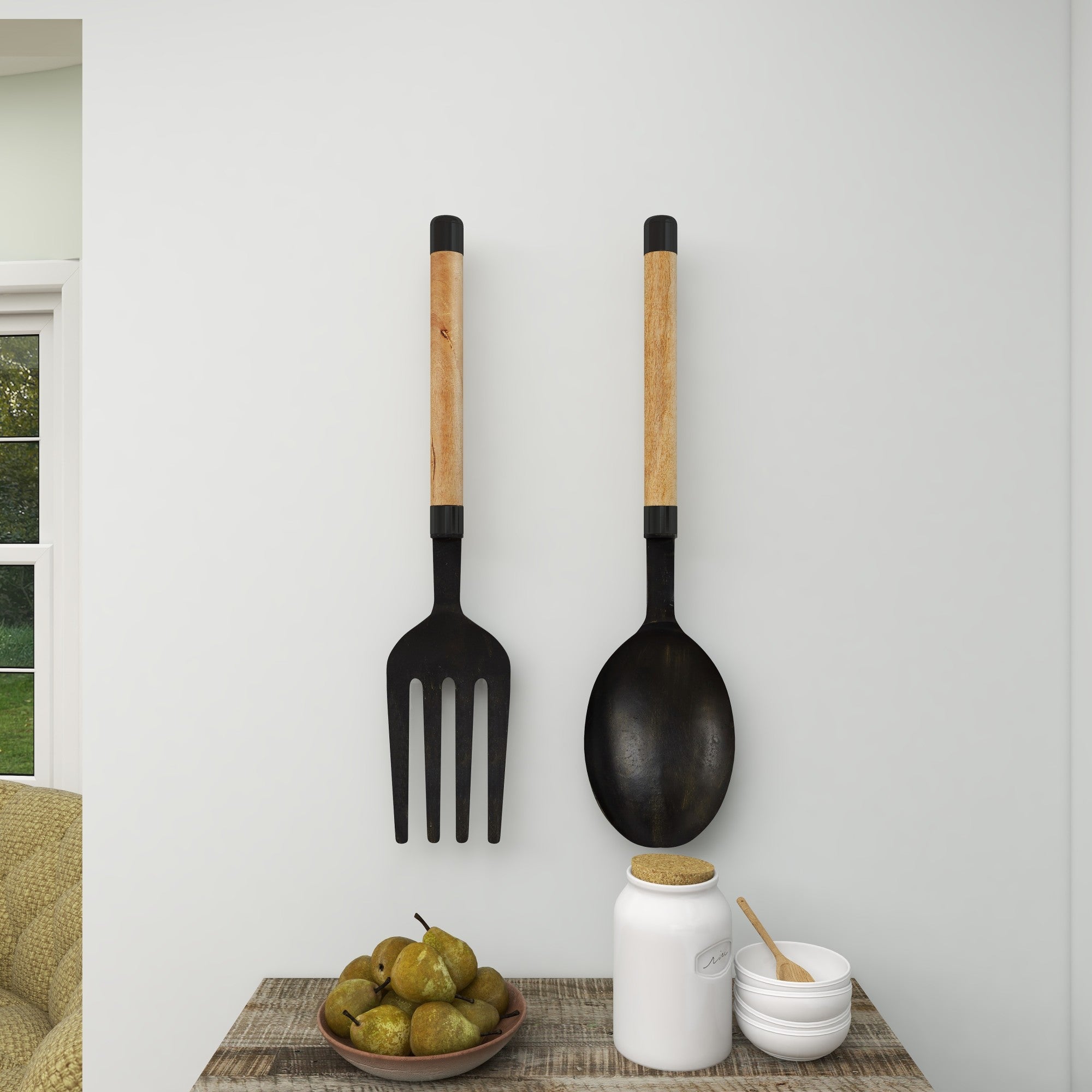 •Polished wall art set for living room stands out with its oversized fork and spoon shapes designed with wooden style handles