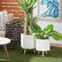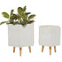 Set of 2 White Magnesium Oxide Indoor Outdoor Planter with Wood Tripod Legs
