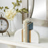 Set of 2 Geometric White Marble Arch Decorative Bookends with Wood Accent