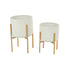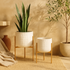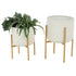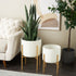 Set of 2 White Metal Dome Indoor Outdoor Planter with Gold Stand