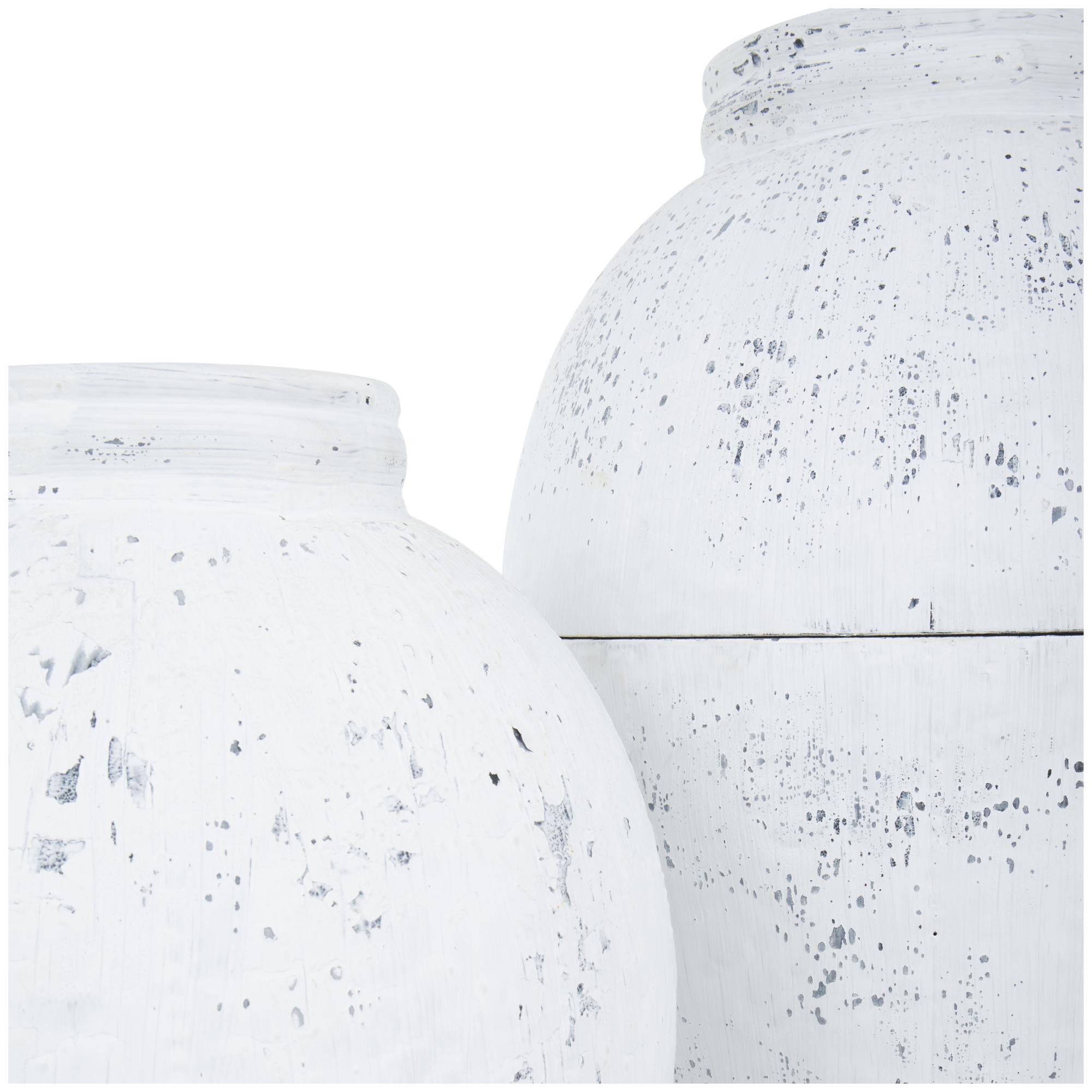 Set of 2 White Metal Tall Distressed Pot Floor Decorative Vase