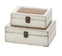 Set of 2 White Wooden Decorative Box with Hinged Lid