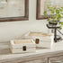 A practical yet stylish upgrade that instantly elevate the look of your room. Perfect way to add depth and texture to your surface space with this compact and discreet box. Perfect for storing jewelry or small items, this set of 2 decorative keepsake boxes will add character to any farmhouse style home. Designed with felt or rubber stoppers at the base that prevent scratching furniture and table tops, as well as sliding around. This item ships in 1 carton. Mdf box makes a great gift for any occasion. Suitable for indoor use only. This item ships fully assembled in one piece. This mdf decorative keepsake box comes as a set of 2. Farmhouse style.