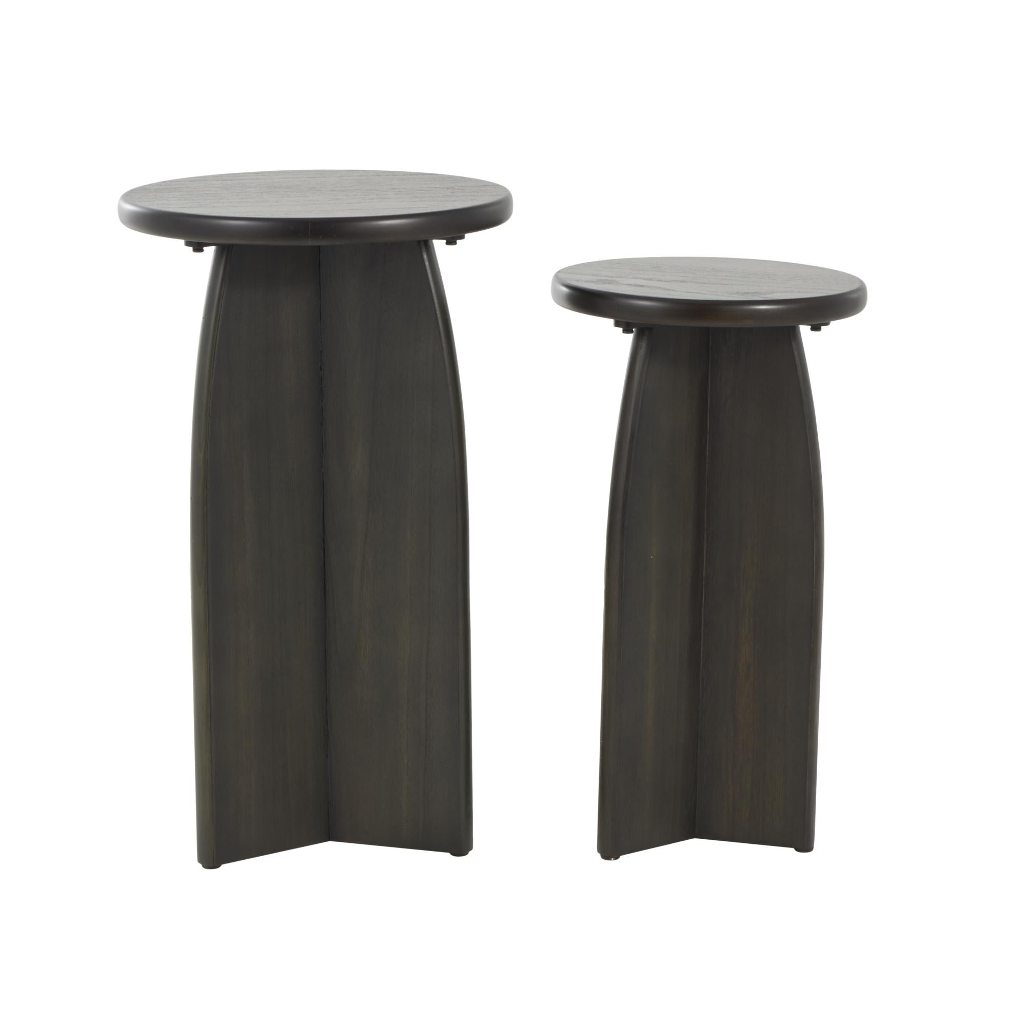 •Remarkable feature of this wood set of 2 accent tables is the pedestal bases which gives it a timeless charm, making it an excellent addition to any room decor